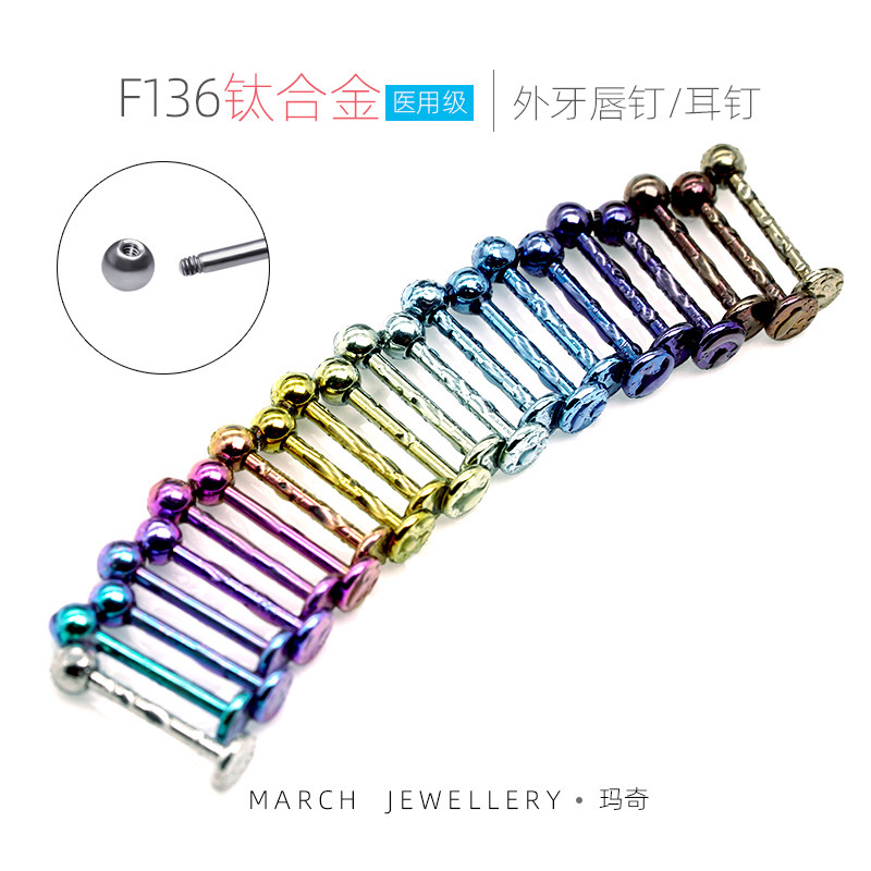 F136钛合金耳钉T形男女唇环唇钉耳骨日韩风格外螺纹穿刺饰品男女