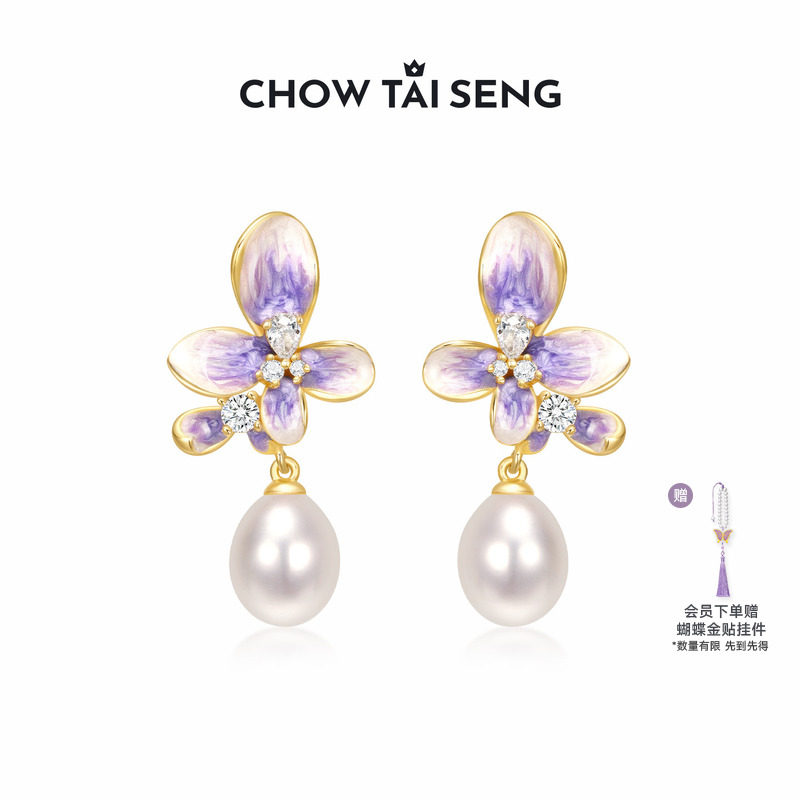 周大生紫藤花耳钉纯银S925女轻奢精致珍珠耳环耳饰生日礼物送妈妈