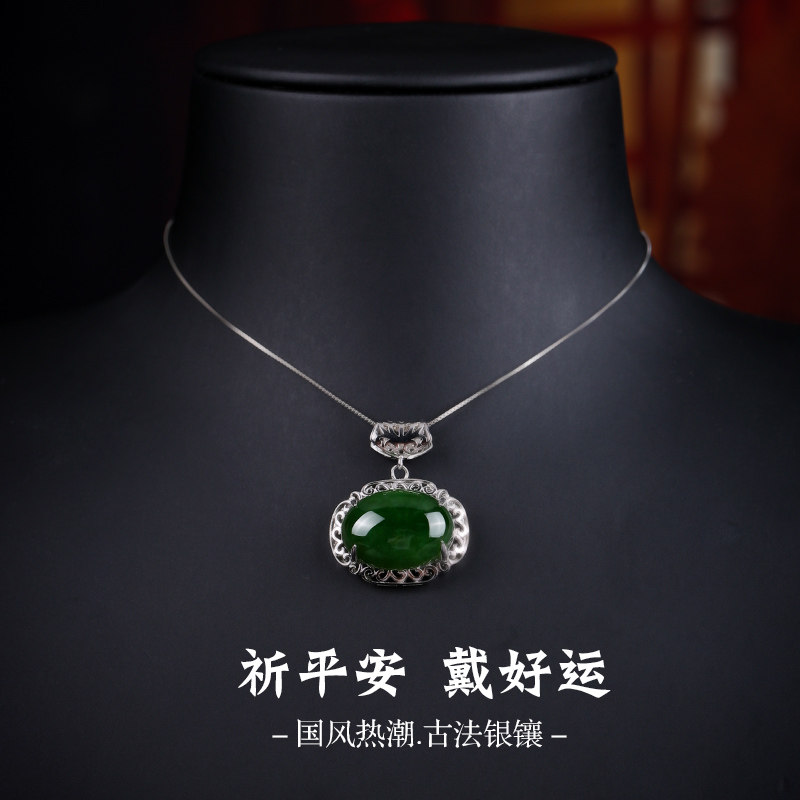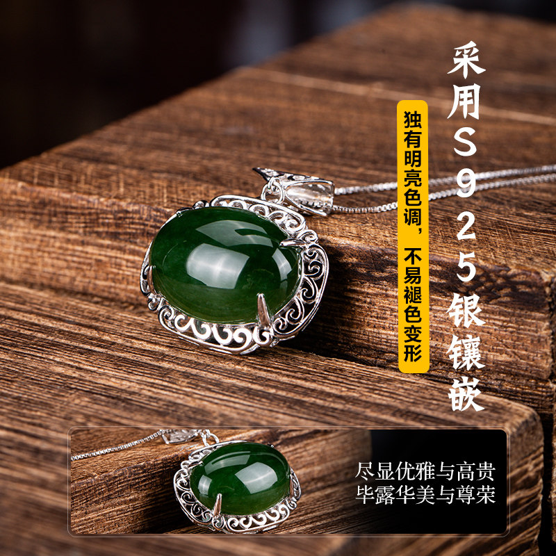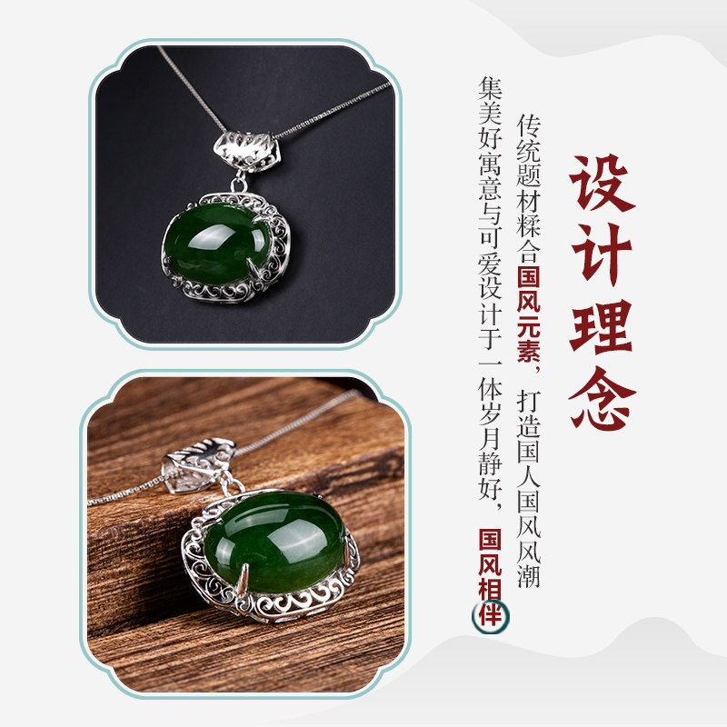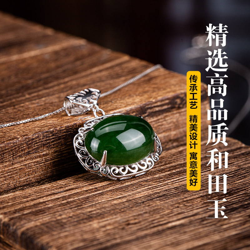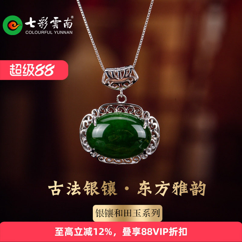 七彩云南和田玉碧玉吊坠银镶嵌银镶玉器坠挂件玉吊坠送女友礼物