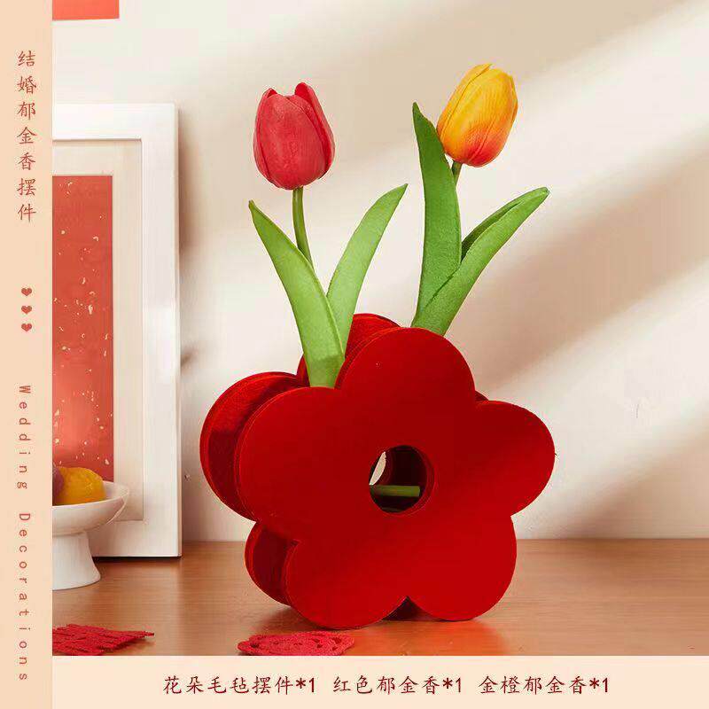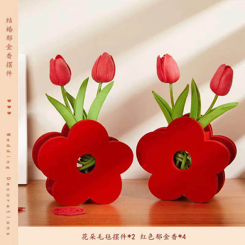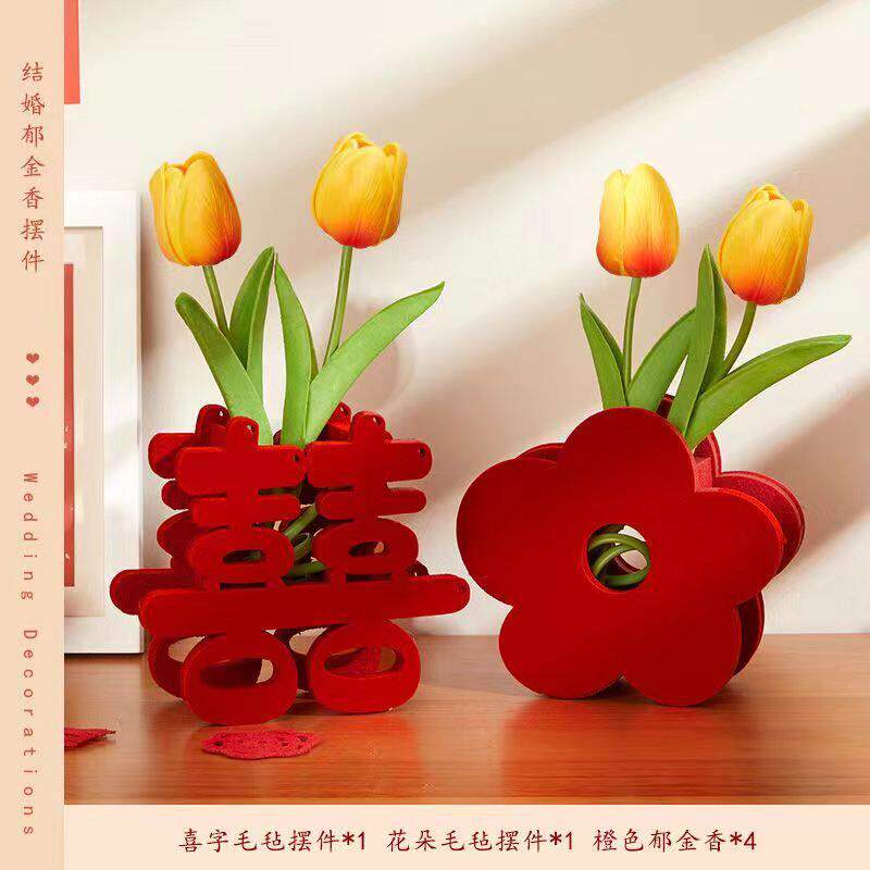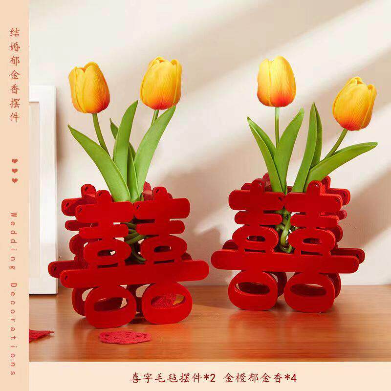 结婚专用喜字立体摆件订婚用品婚房布置卧室装饰喜字桌摆郁金香花