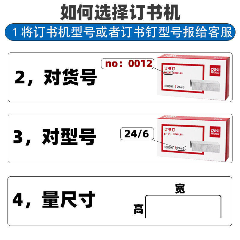 【50盒】得力0012订书钉针通用型24/6订书钉大号12号标准型订书钉