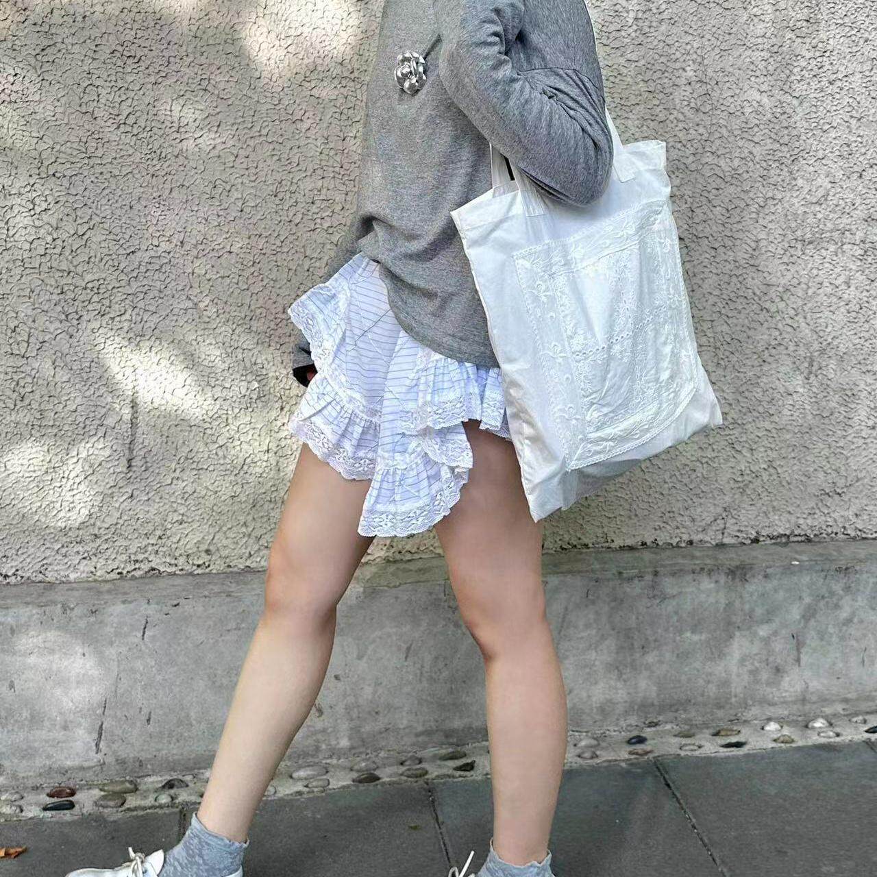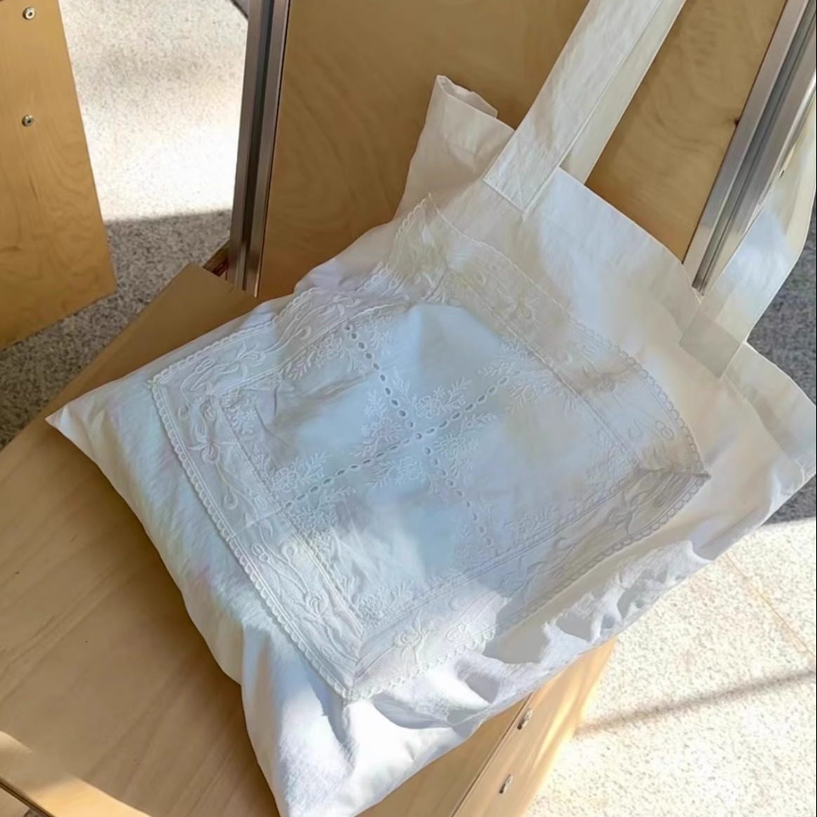BLEU et ROSE【铃兰包】原创法式大容量帆布袋蕾丝收纳单肩包刺绣