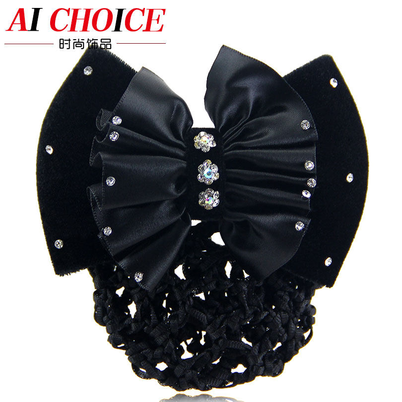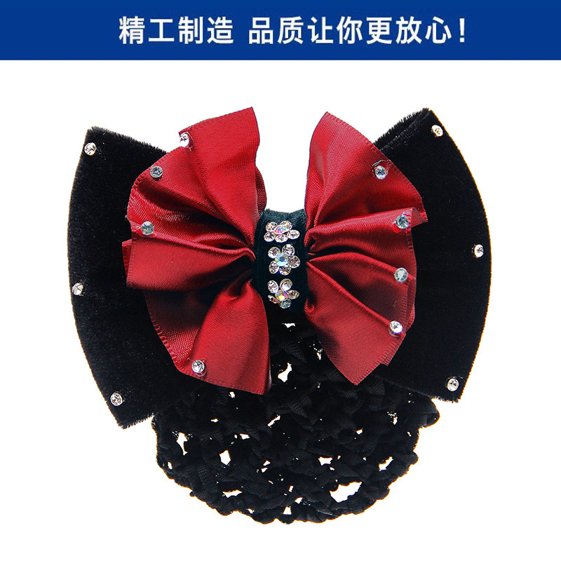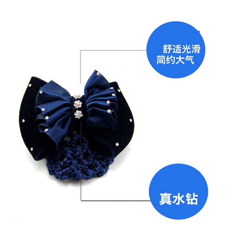 蝴蝶结满水钻职业头花网兜发饰空姐银行护士酒店上班发夹发网头饰