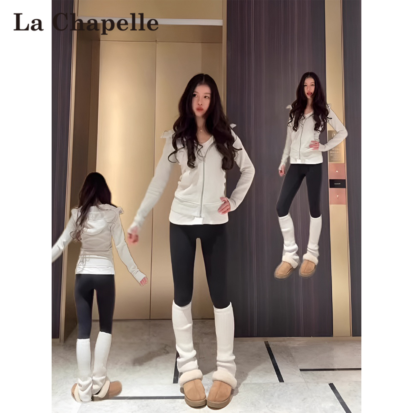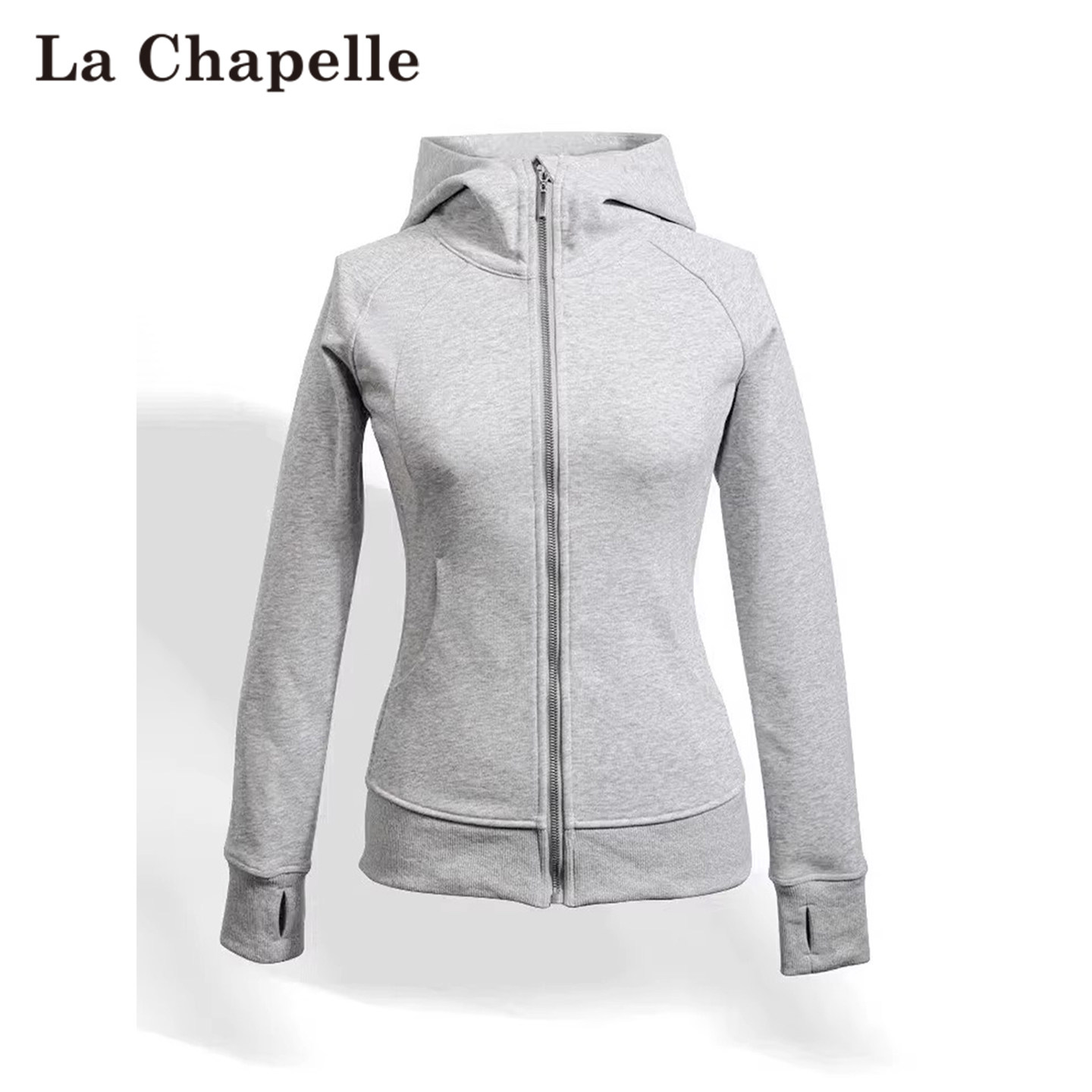 拉夏贝尔连帽卫衣女修身显瘦早春外套正肩灰色开衫长袖瑜伽上衣