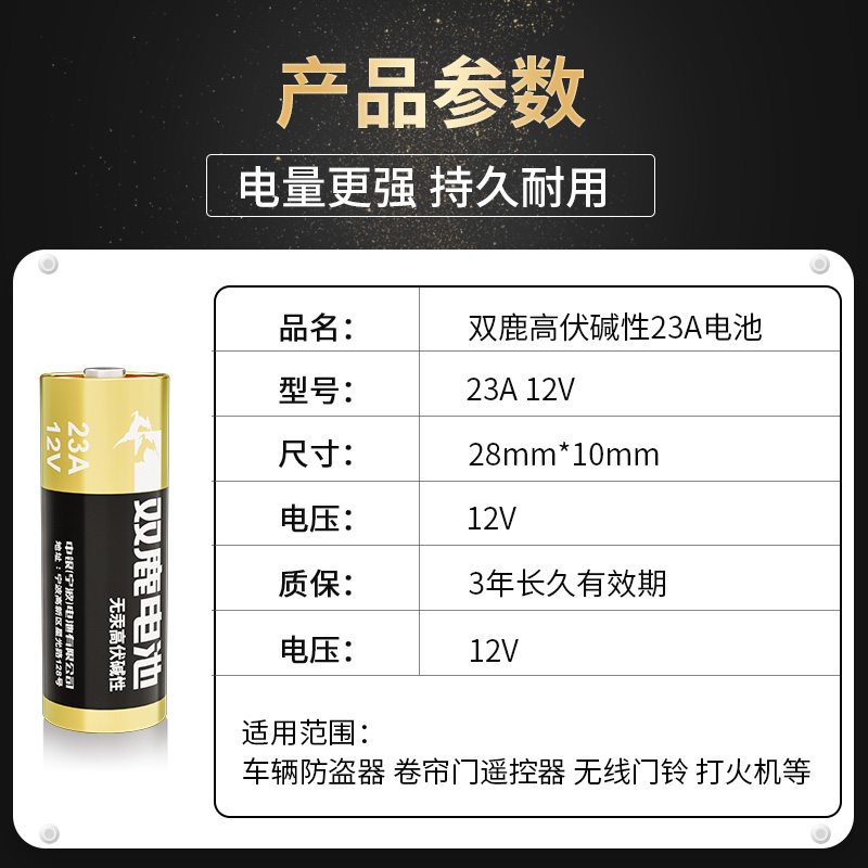 双鹿12V23A碱性电池无汞卷帘门铃遥控器电动防盗器L1028小号电池