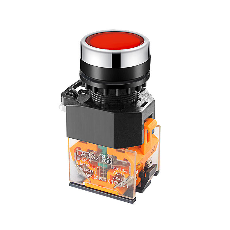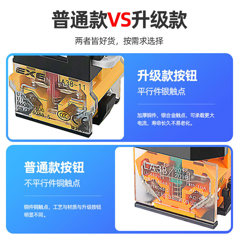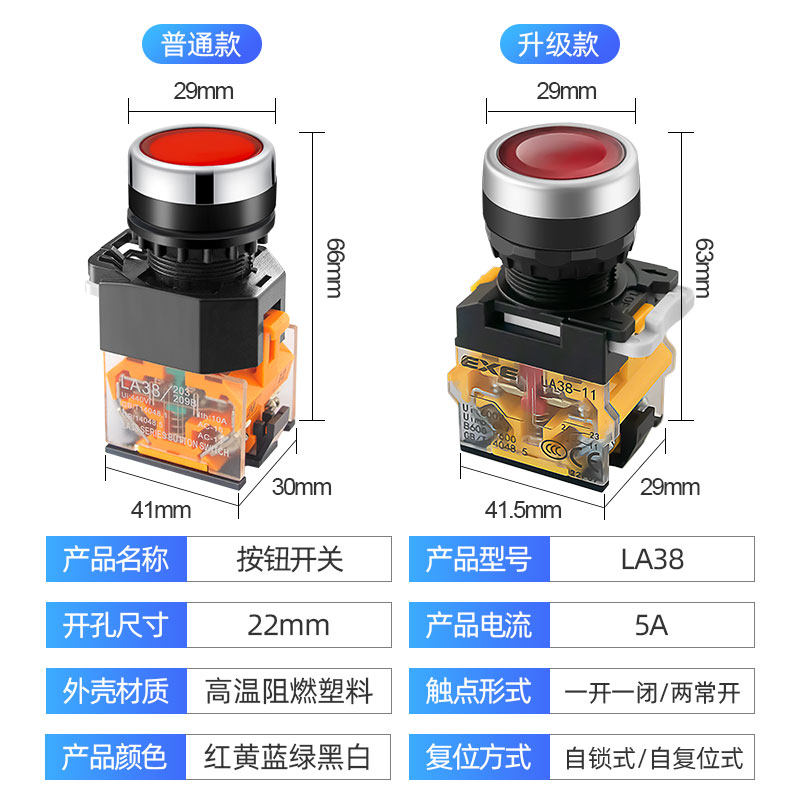 按钮开关自复位LA38平钮圆形开孔22mm一开一闭启动停止开关按钮