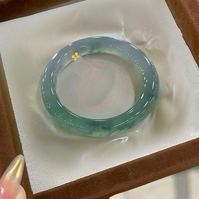 仟喜梵【顺遂】缅甸高端翡翠玉手镯子女款冰飘花正品贵妃玉石处理