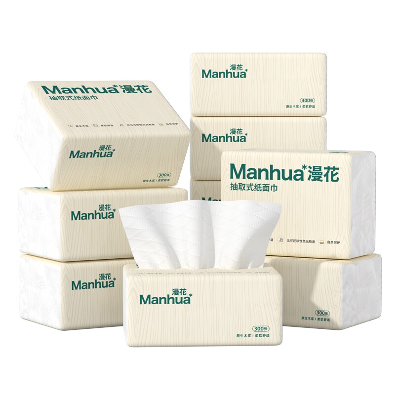 漫花400张抽纸餐巾纸卫生纸巾家用整箱批发实惠装擦手纸面巾纸抽