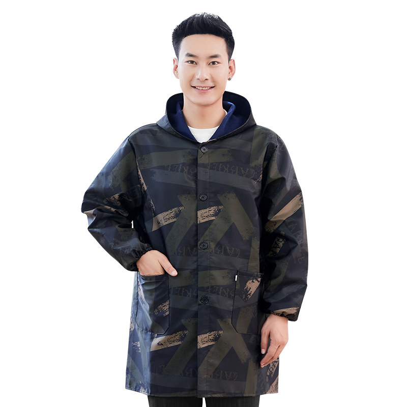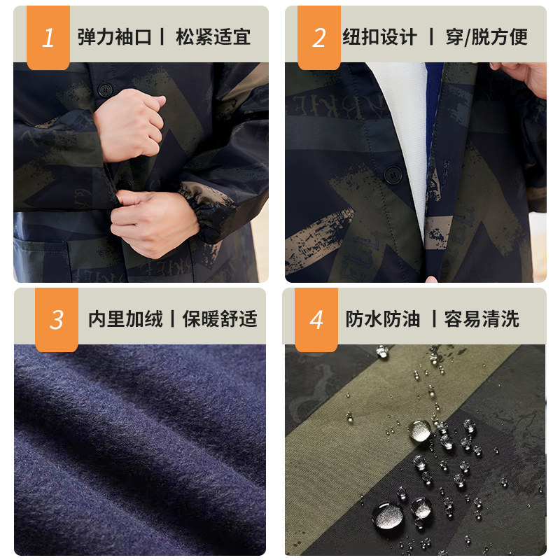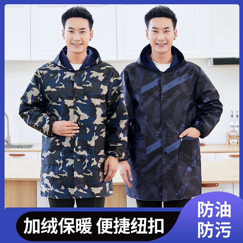 防水加绒厚罩衣大人围裙家用厨房时尚防油长袖新款男士工作服冬季