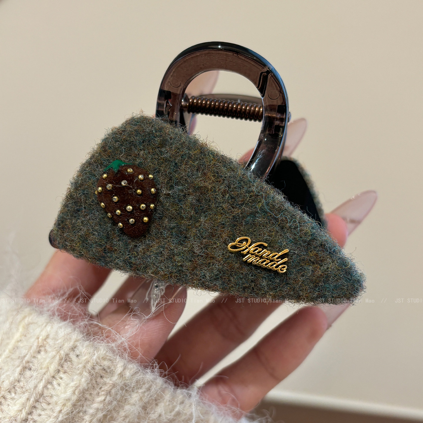 韩系时尚草莓毛毡发夹女2026新款后脑勺夹子高级感抓夹鲨鱼夹发饰