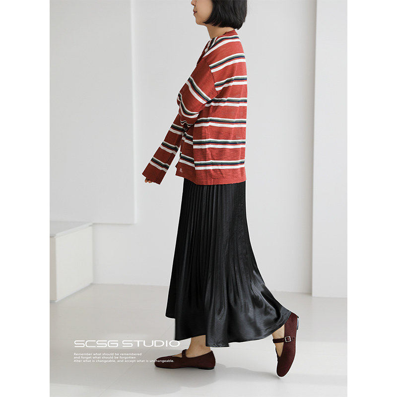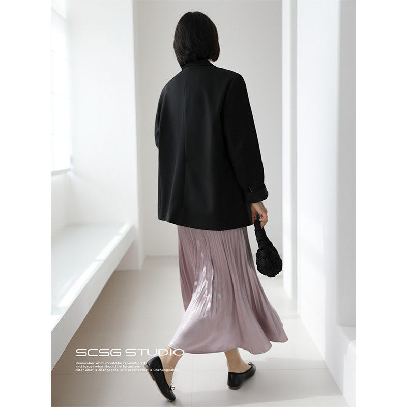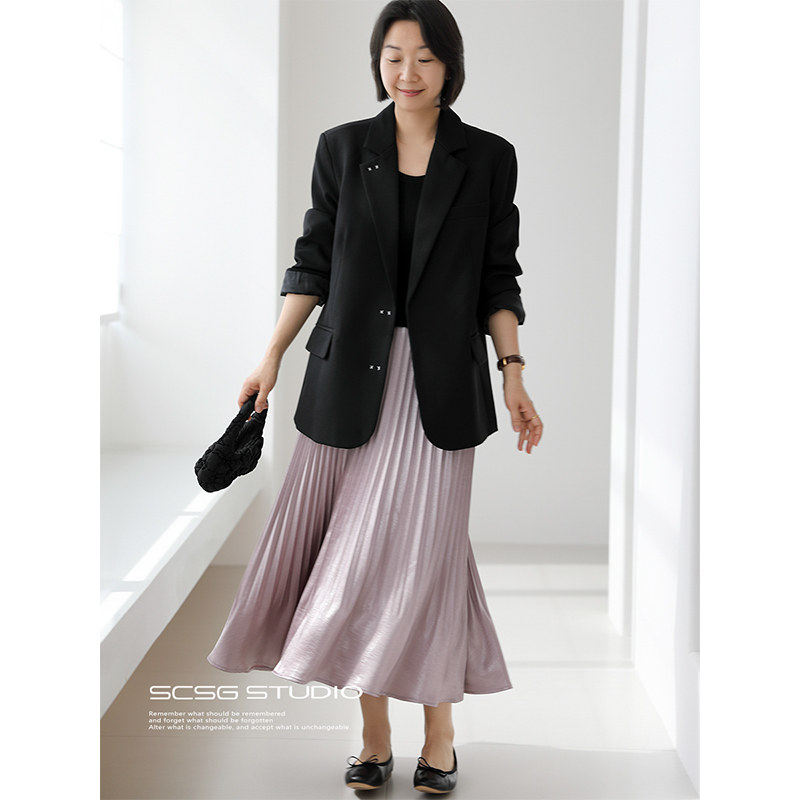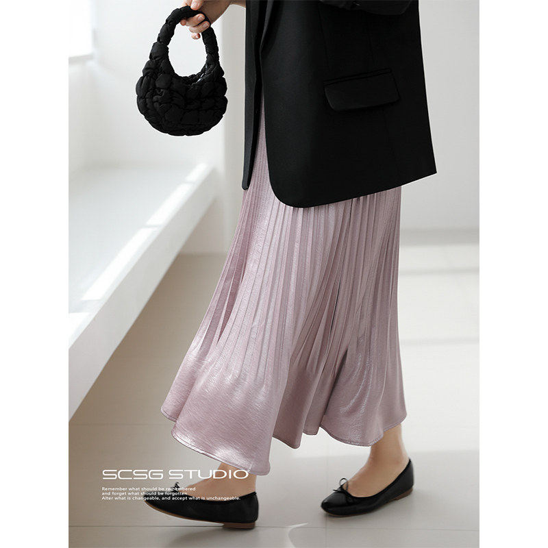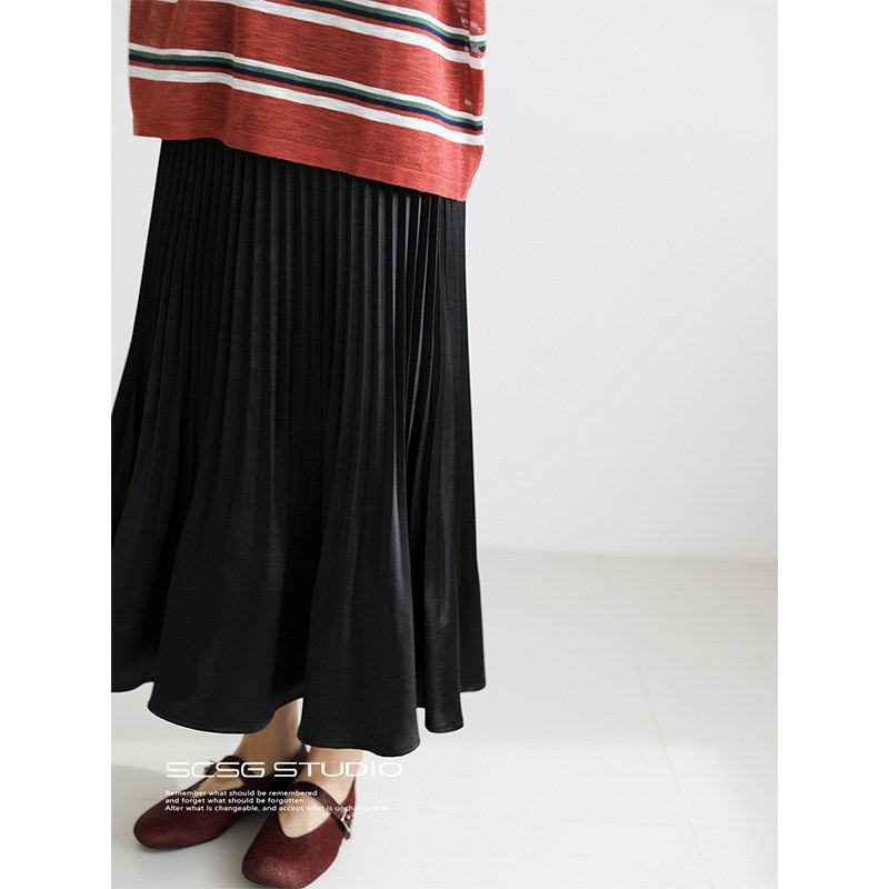 三吋时光4588/珠光感抗皱垂坠百褶裙半身裙夏显瘦a字裙中长裙飘逸