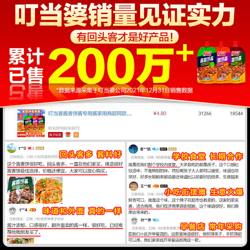 叮当婆酱香饼专用酱130g秘制煎饼果子手抓饼鸡蛋灌饼烧烤家用酱料