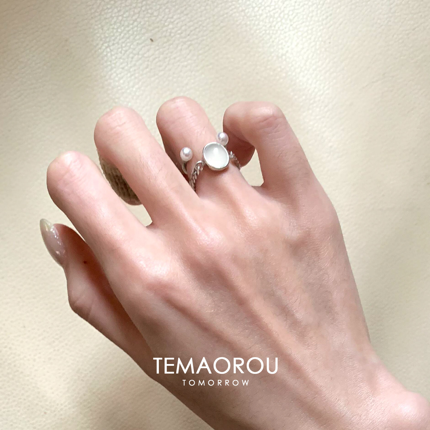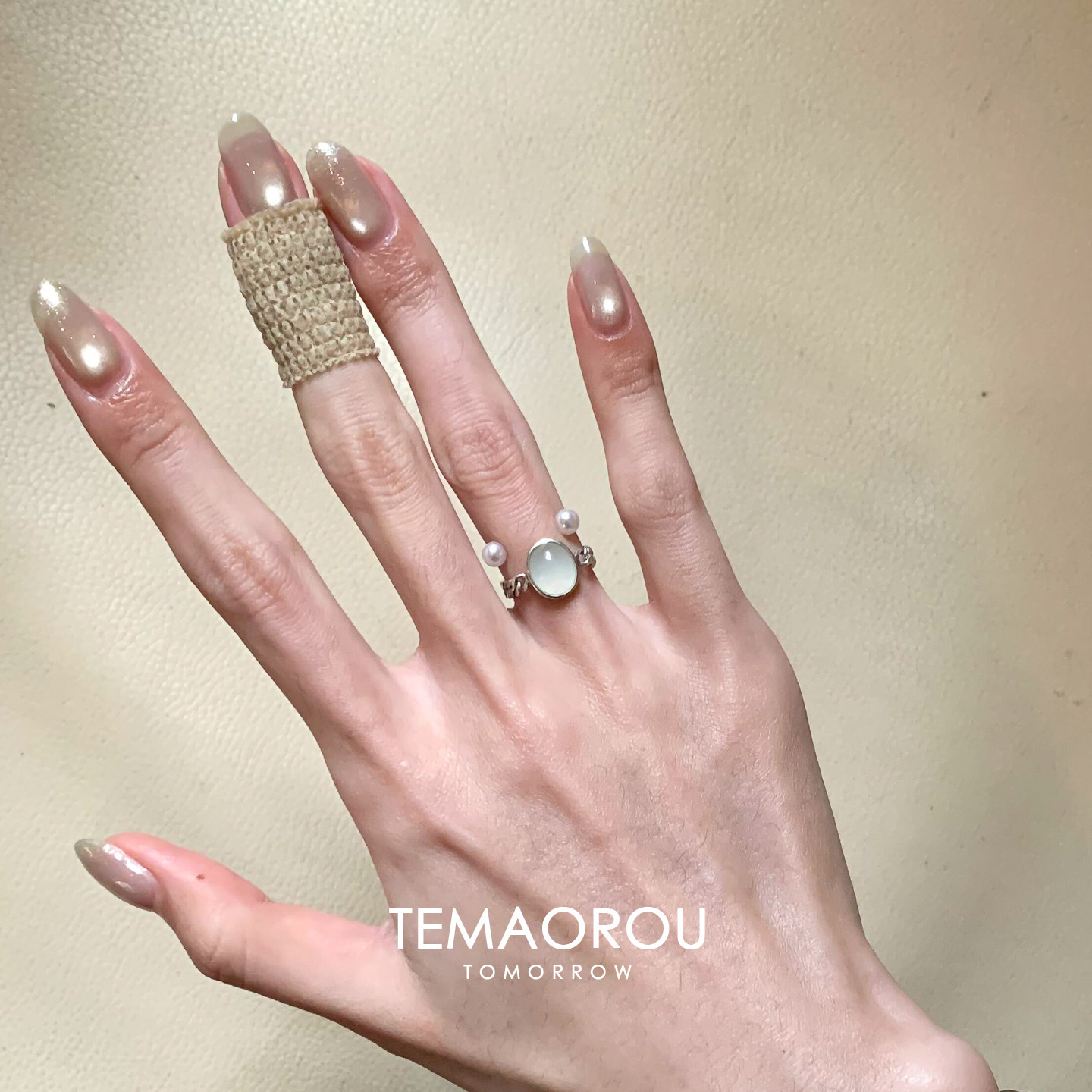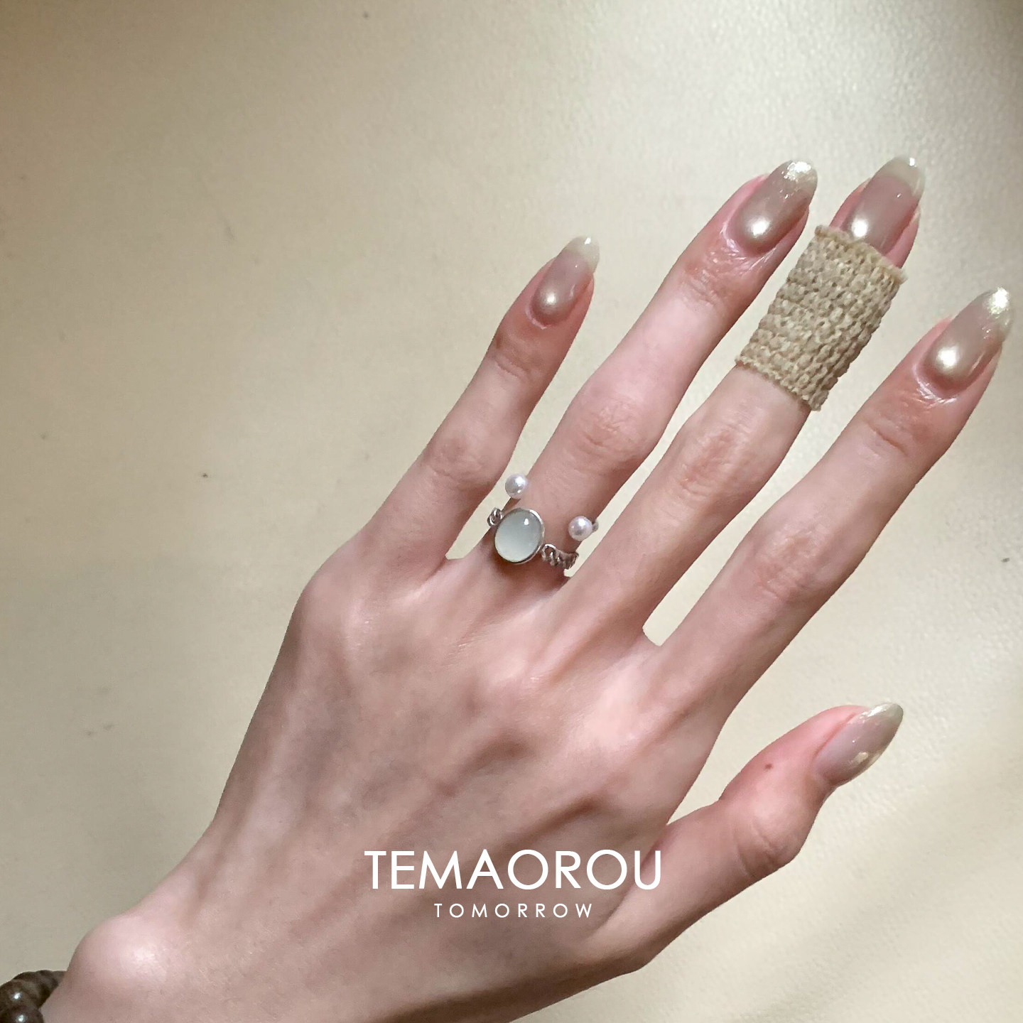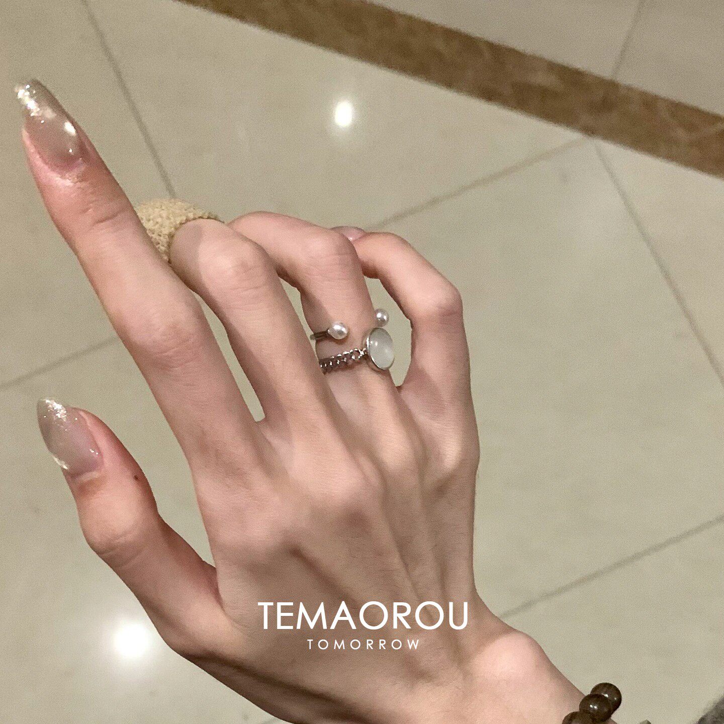 新中式清冷感椭圆蛋面仿玉髓戒指女小众设计可调节食指戒叠戴尾戒