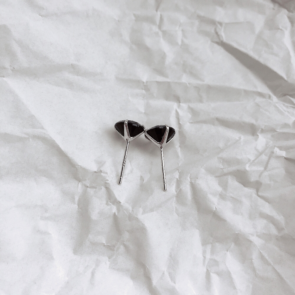 S925纯银黑色锆石小钻男女款基础耳钉养耳不掉色好质感耳骨钉百搭