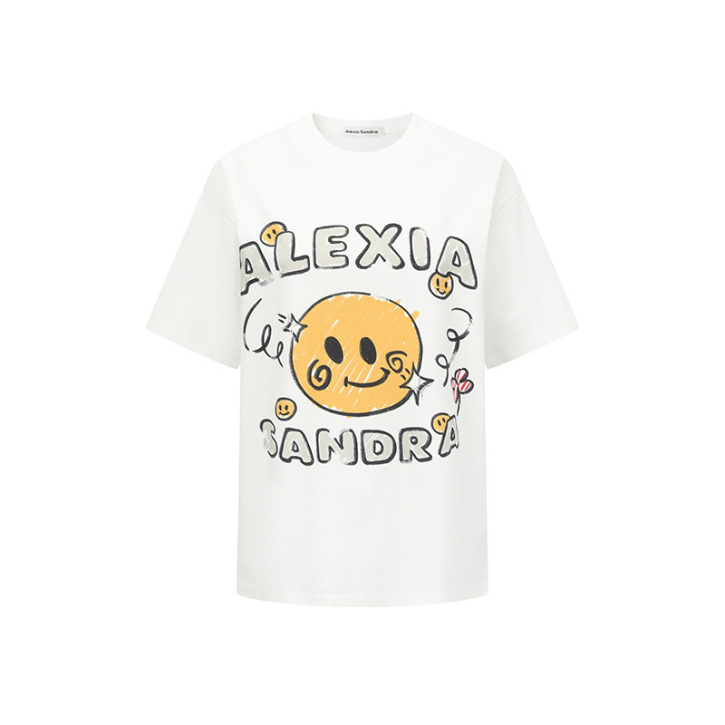 Alexia Sandra荧光笑脸印花短袖T恤女夏季宽松百搭潮牌时尚设计感