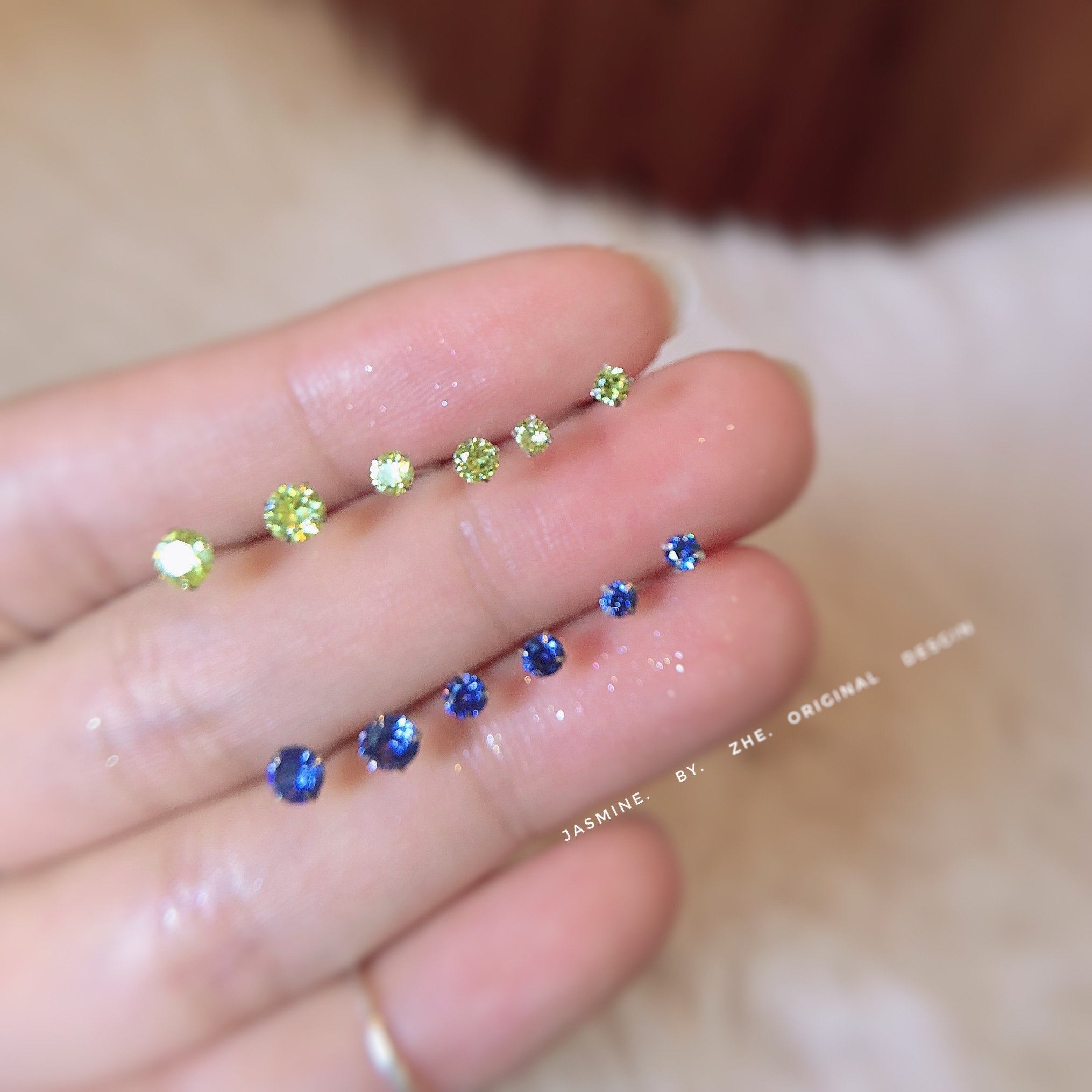 S925纯银定制色锆石耳钉青金蓝紫耳饰超闪养耳洞迷你耳骨钉养耳洞