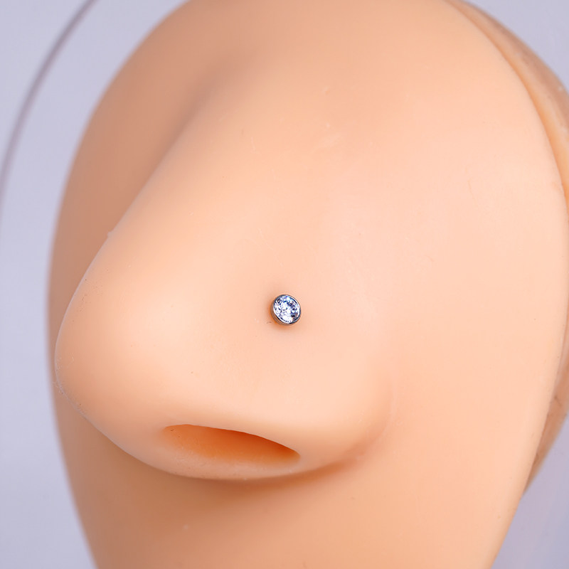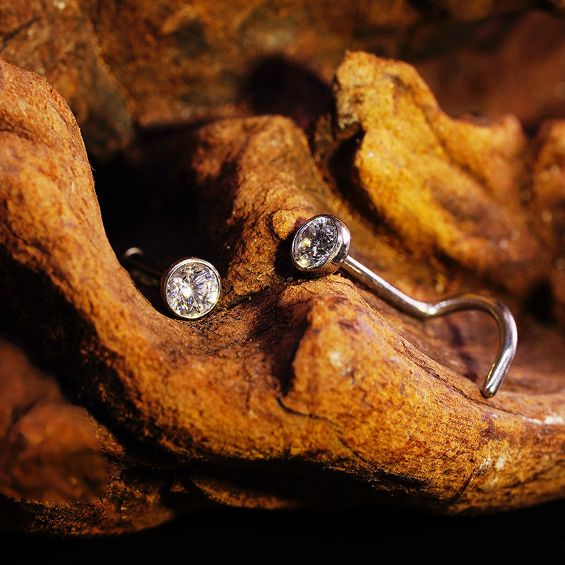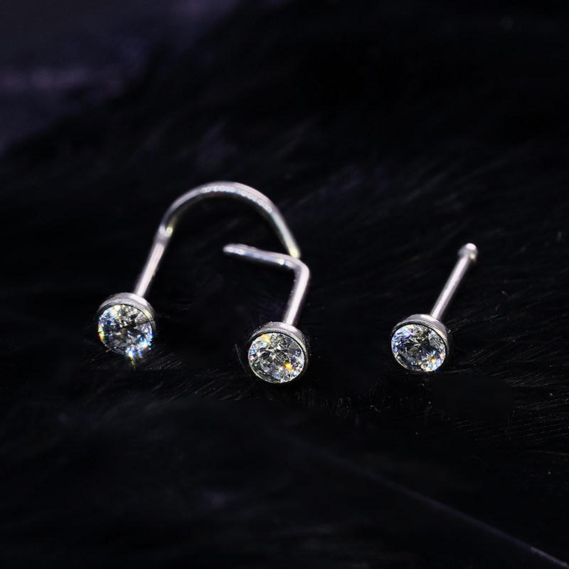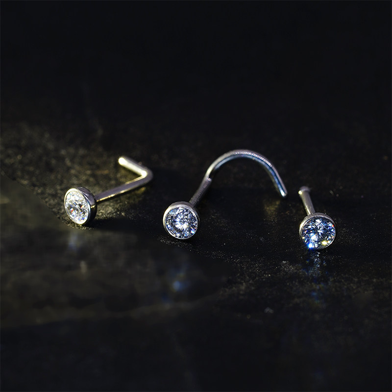 钛合金弯杆直杆L型鼻钉植入级饰品 F136钛超闪锆石小钻隐形鼻环