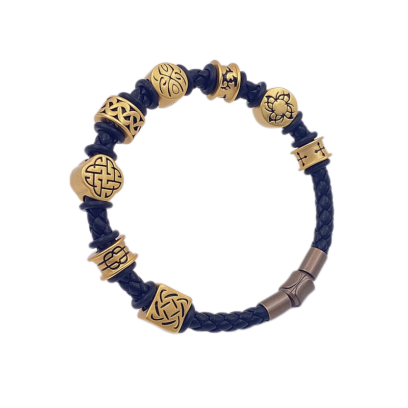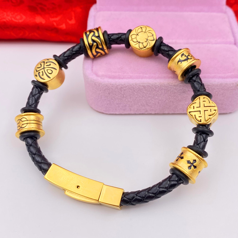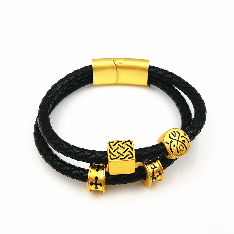 5毫黑皮绳手链男刺青八件套酷黑转运珠大孔信念守护和谐幸运同款