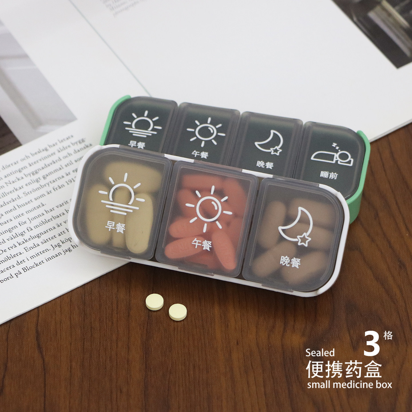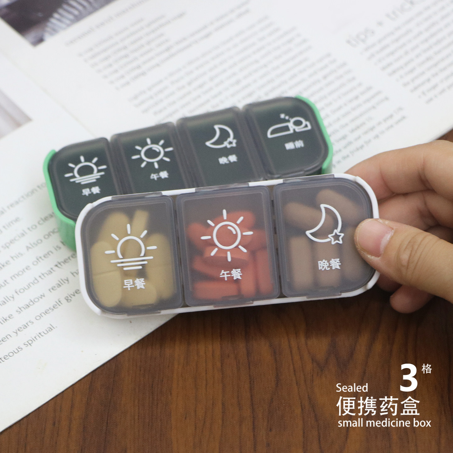 药盒便携可拆药品收纳早中午晚大容量随身迷你随身带药片分装药盒