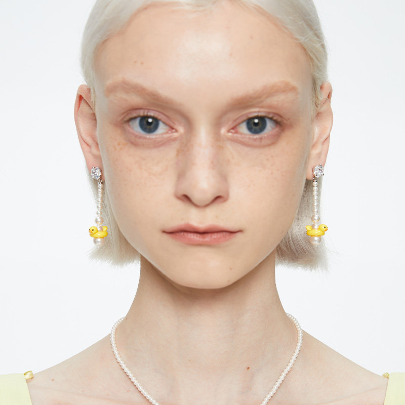 FWISH飞未夕 狂欢系列 泳圈鸭珍珠宝石耳环925纯银女