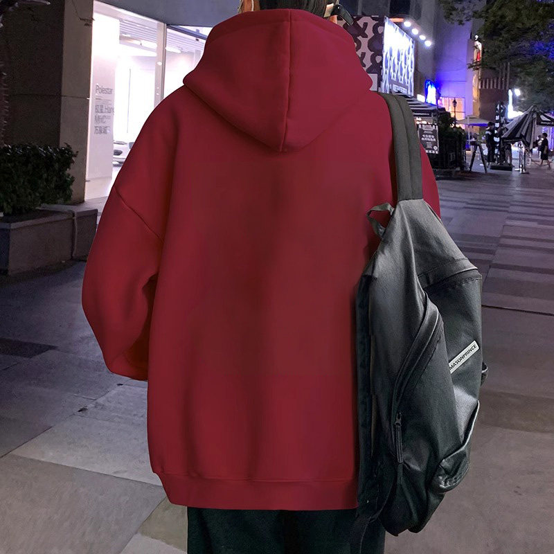 酒红色连帽卫衣男2025春秋薄款秋冬加绒加厚潮牌学生美式重磅外套