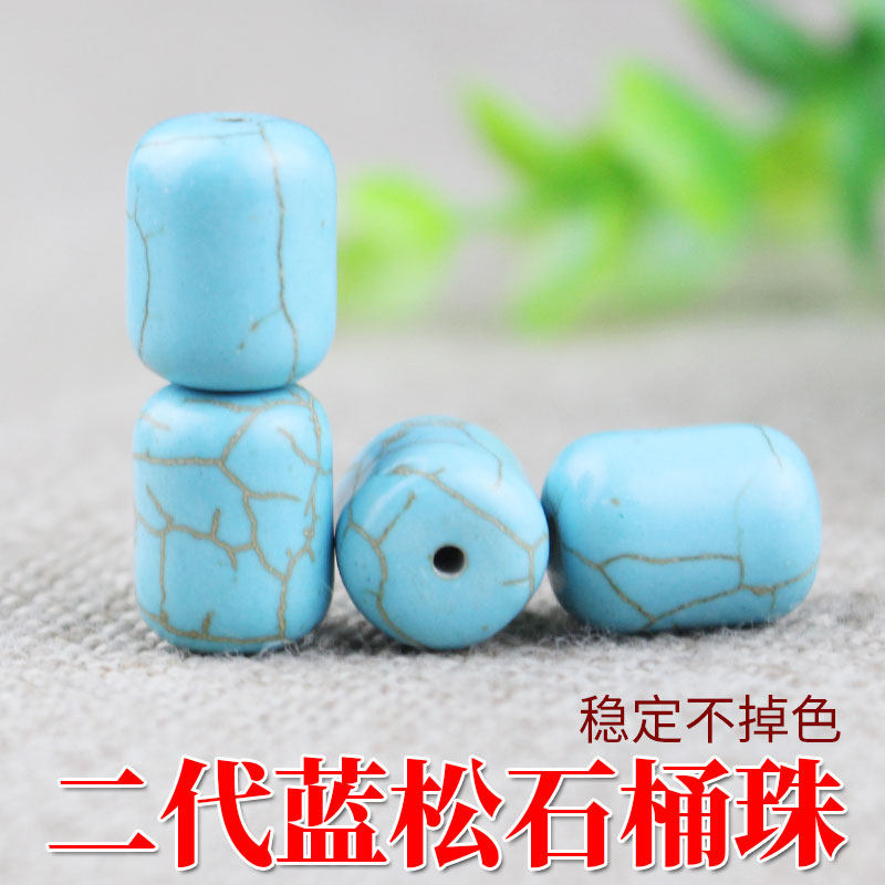 兰松石14*10mm蓝松石桶珠鼓珠手工diy佛珠配件星月菩提腰珠不掉色