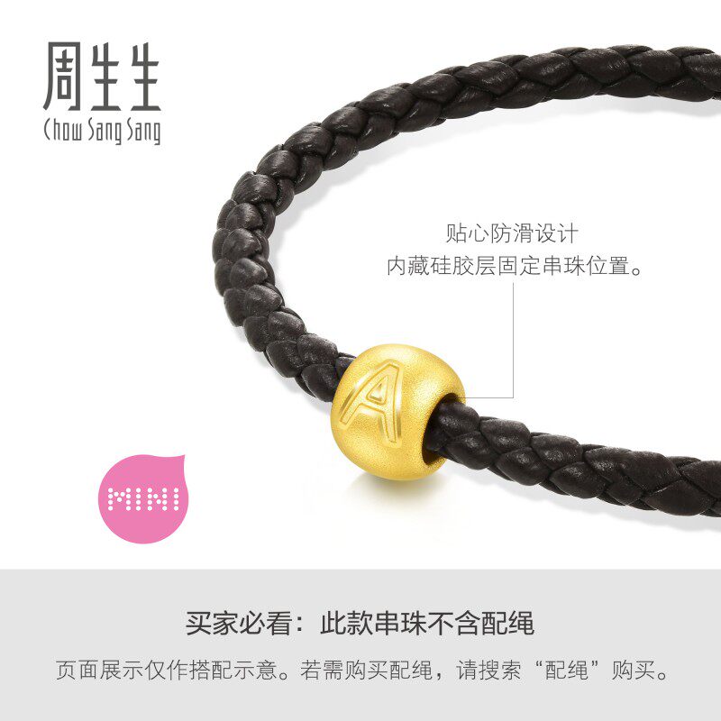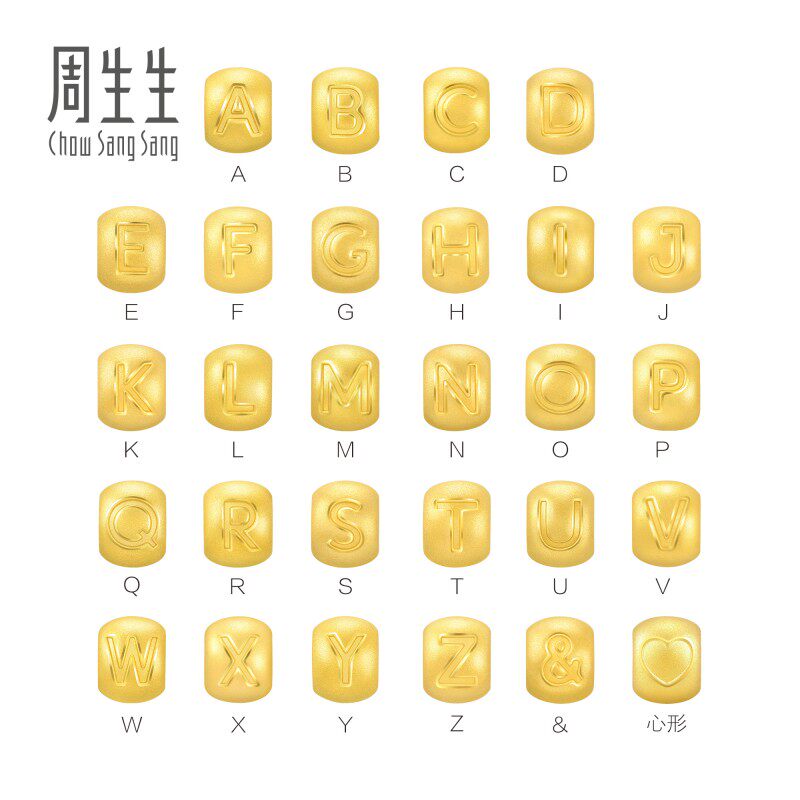 周生生转运珠charme宝贝足金黄金字母吊坠diy手链串珠