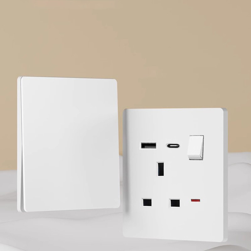 肤感磨砂白港澳版13A英式電制插座带开关USB亞光萬能英標充电面板