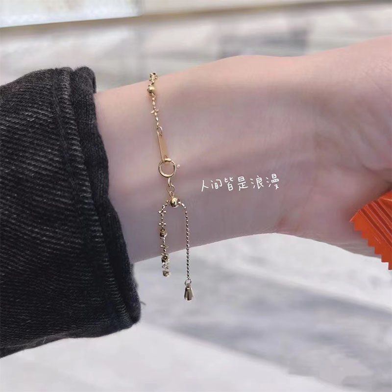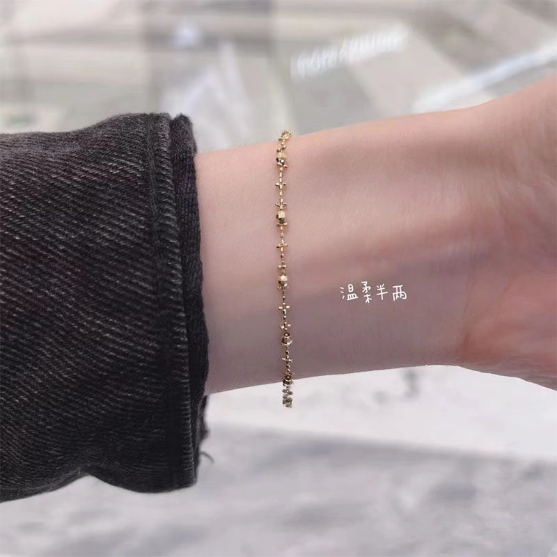 美梓珠宝18K黄金梅花项链手工链蕾丝镭射金球素金K金仙女手链手饰