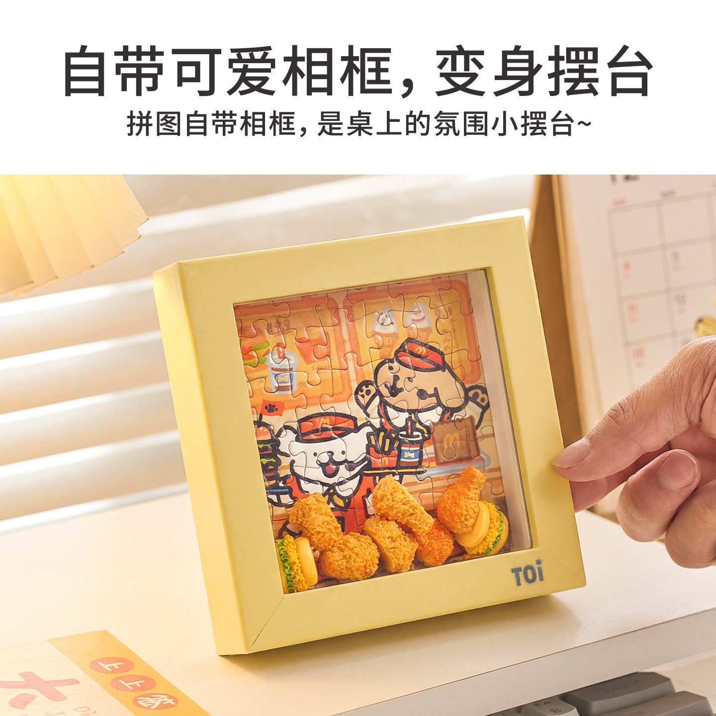 图益TOI线条小狗盲盒小狗快乐餐拼图成人版带相框手工diy玩具摆件