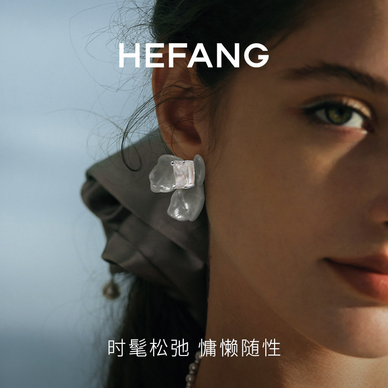 [HEFANG何方奥莱]何方珠宝鸢尾方糖耳环女耳钉灰色耳饰生日礼物