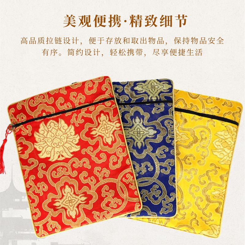 中国风经书袋包经布高档绸缎龙纹拉链环扣多种颜色款式双层袋收纳