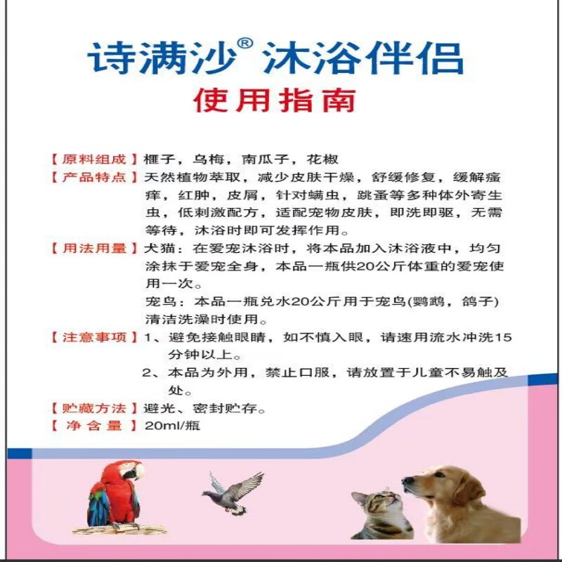 猫狗鸟鸽宠物用驱虫沐浴套装诗满沙跳蚤蜱虫螨虫虱子猫咪犬鸟洗澡