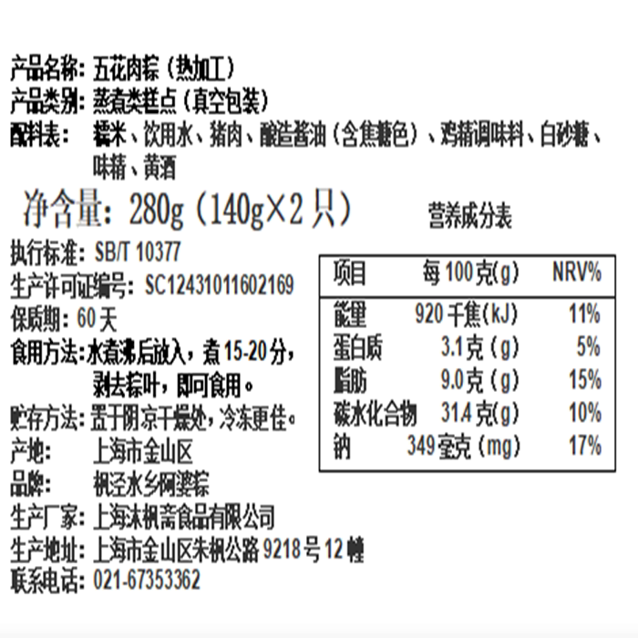 枫泾水乡阿婆粽小五花肉140g每只2只-16只纯手工新鲜现做速食早餐