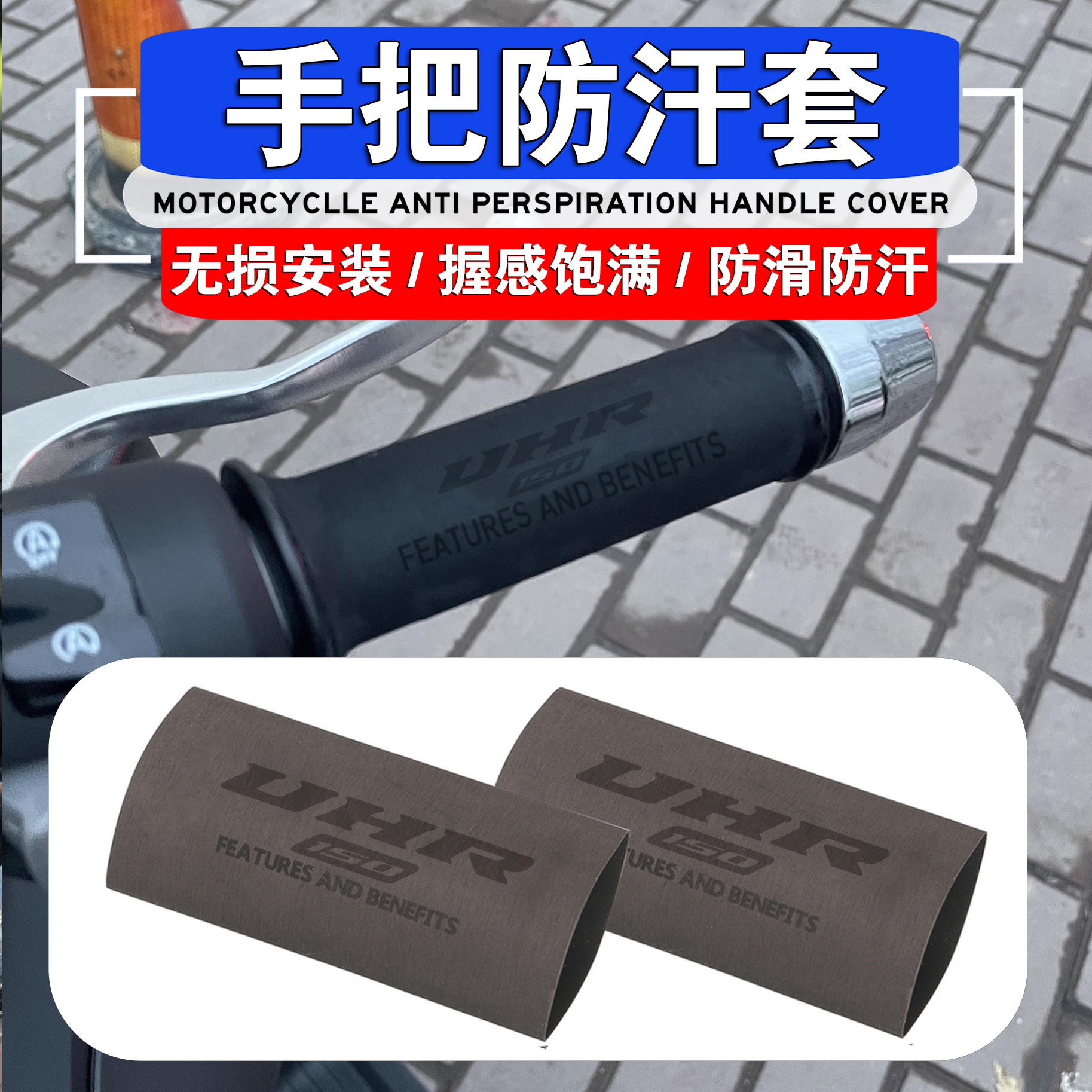 适用豪爵UHR150 AFR125 TR300改装防滑防汗橡胶热缩手把胶套握把