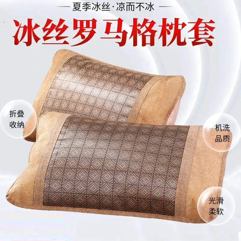 【夏季冰丝枕套一对装】凉席成人枕套冰丝枕套单人枕套家庭通用