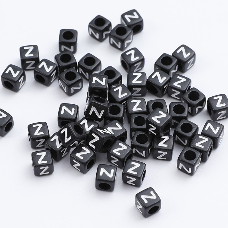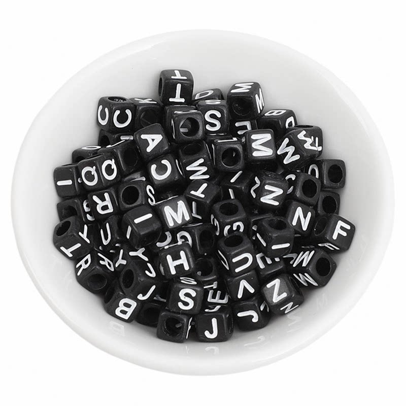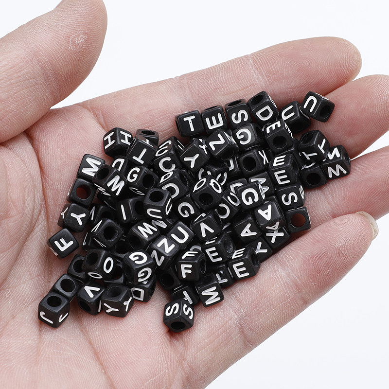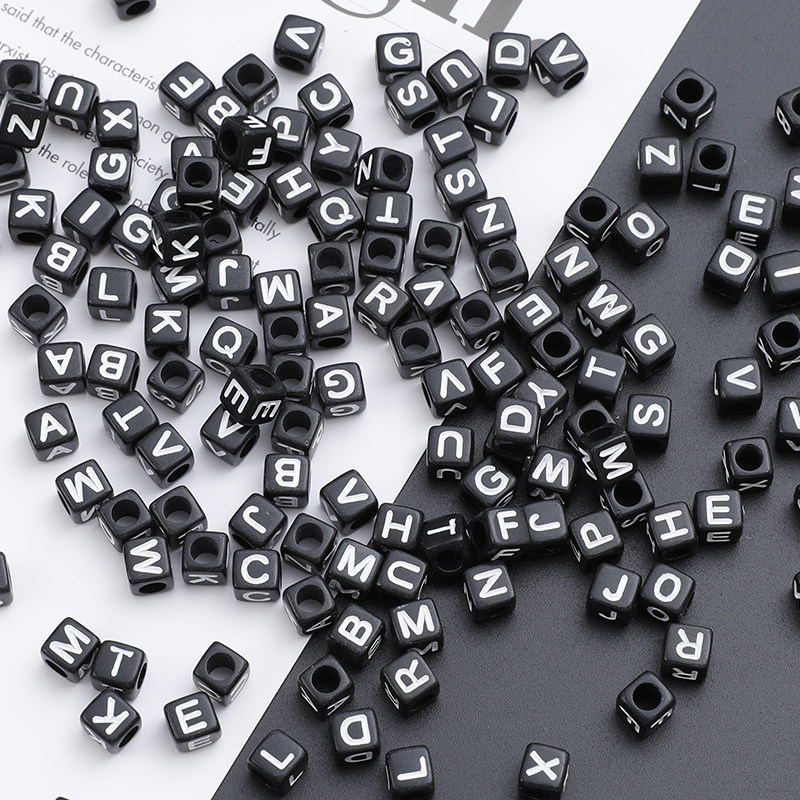 亚克力黑色珠子白英文字母方珠diy串珠手链项链手机链字母珠材料