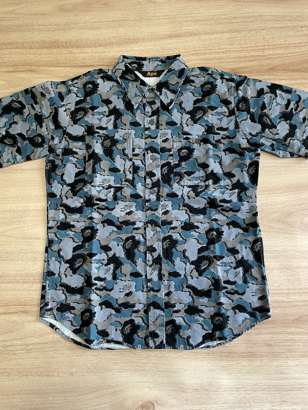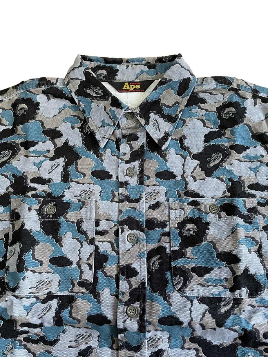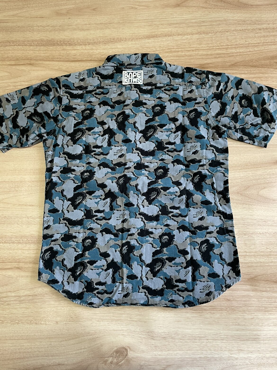 Bape X OriginalFake Kaws 早期限定 蓝迷彩休闲短袖衬衫 S