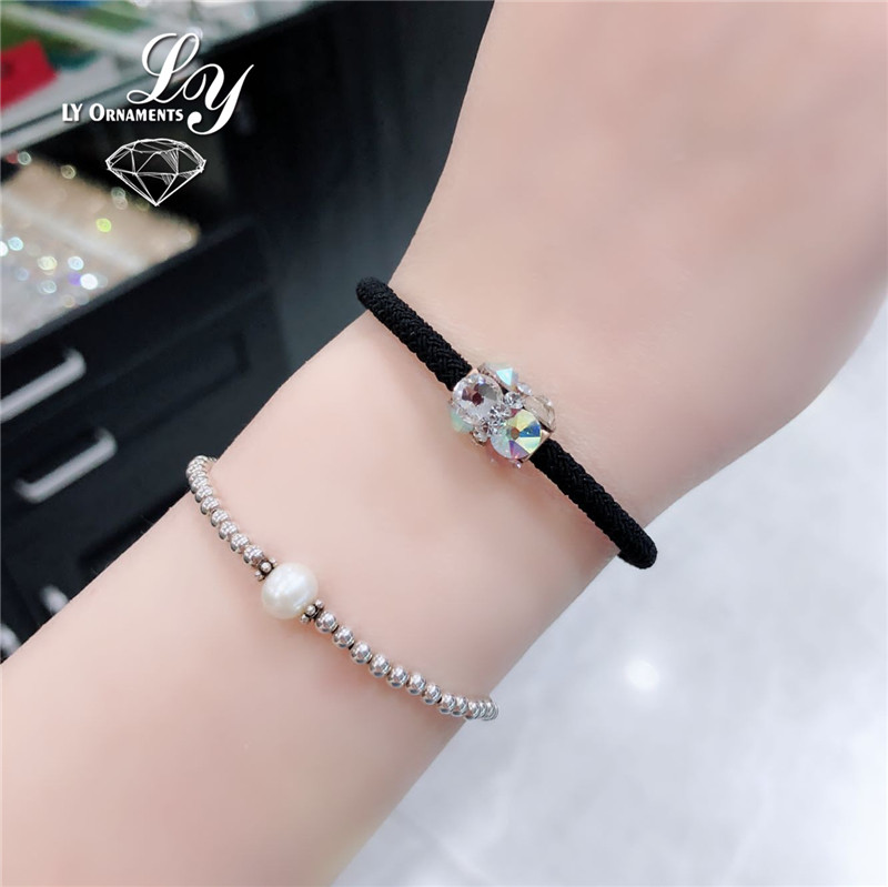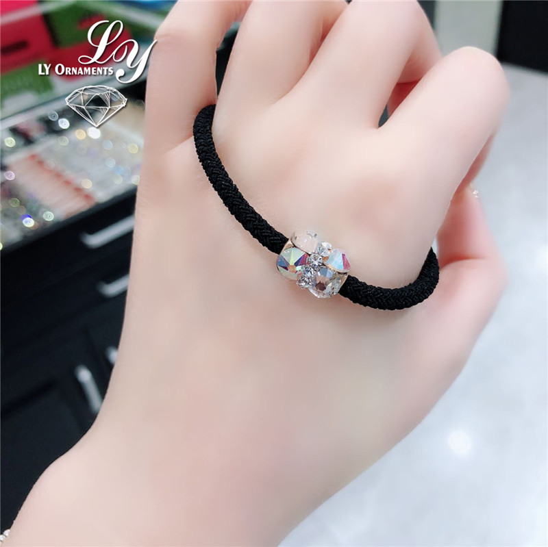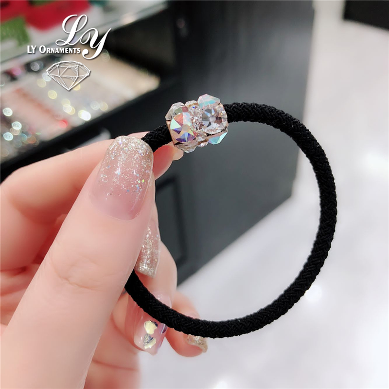 韩国基础打底黑色皮筋简约水钻皮套头绳女网红个性百搭发圈发饰品