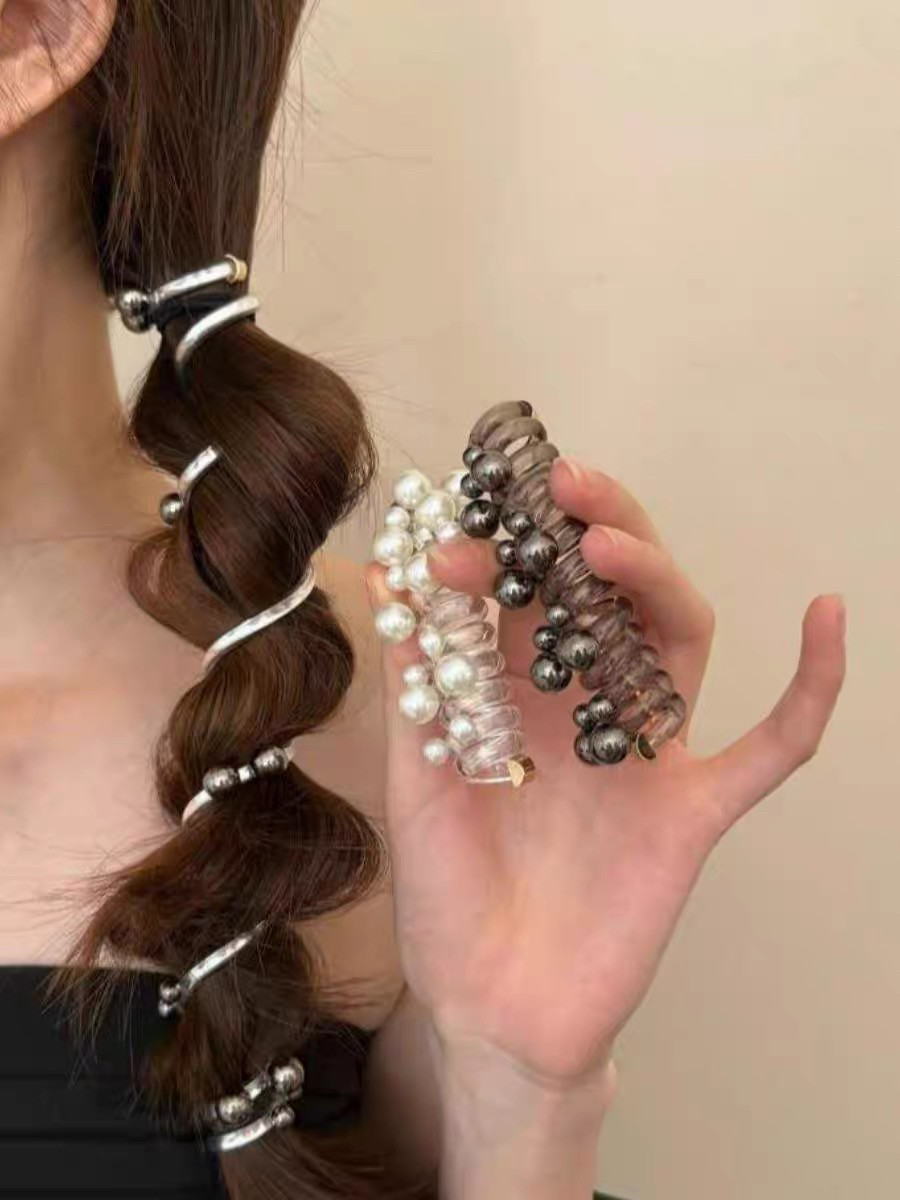 日系甜酷珍珠电话线发圈珠珠头绳高级感低马尾发绳女皮筋编发神器