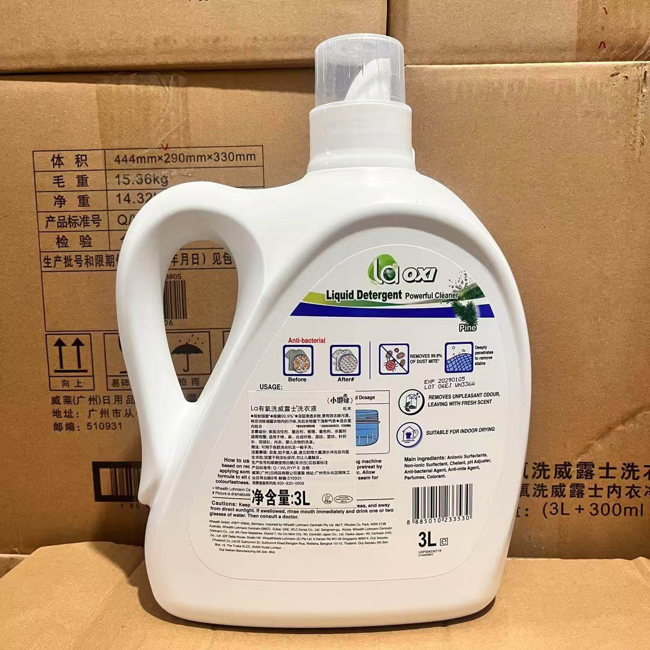 威露士La有氧洗衣液松木3L除菌除螨深层清洁室内留香晾晒无异味
