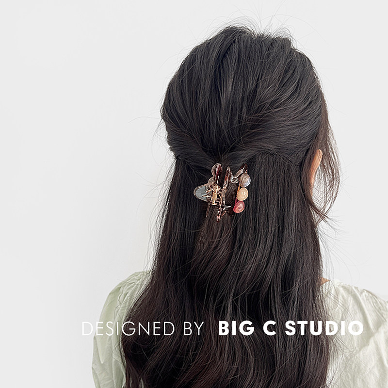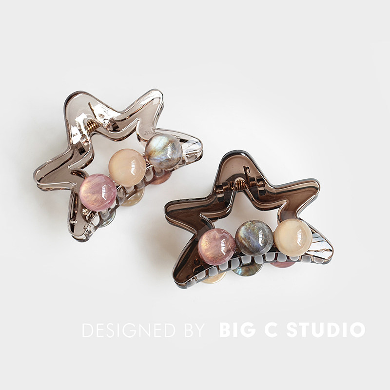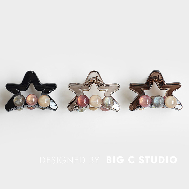 韩版可爱五角星抓夹甜美气质后脑勺半扎发鲨鱼夹精致圆珠百搭发抓