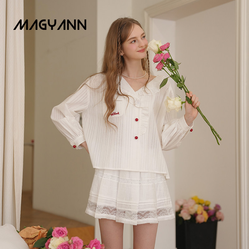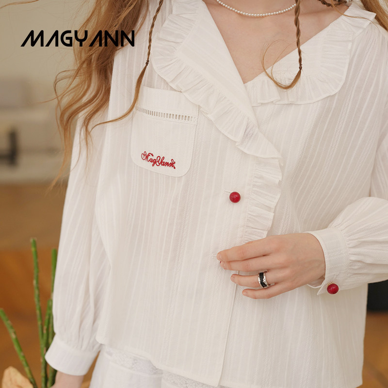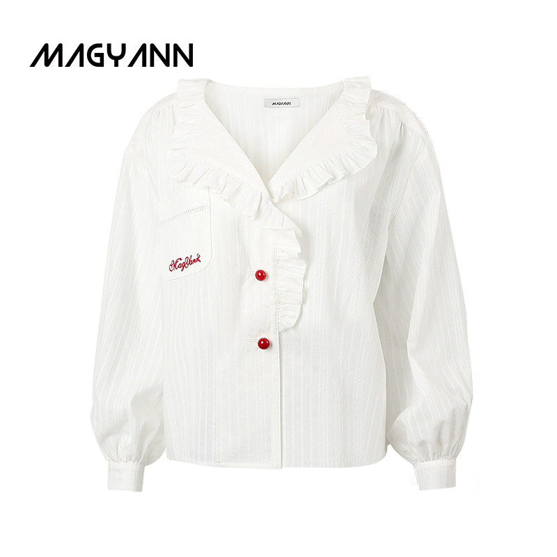 【午后花园】Magyann设计师原创2026春少女感甜美翻领木耳边衬衫