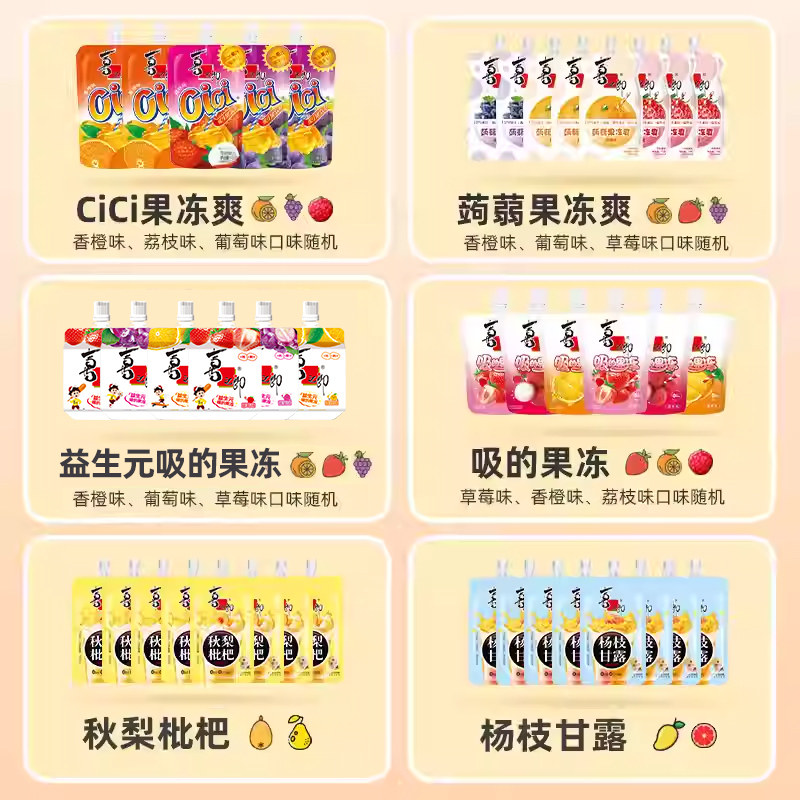 喜之郎cici果冻爽吸的果冻吸蒟蒻葡萄果汁儿童休闲魔芋零食大礼包