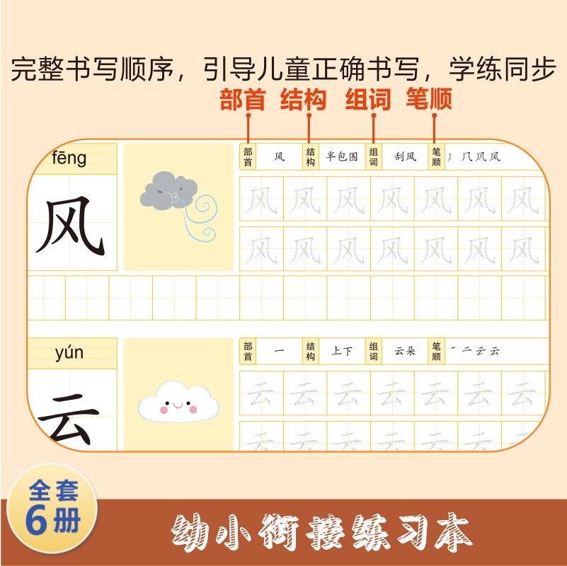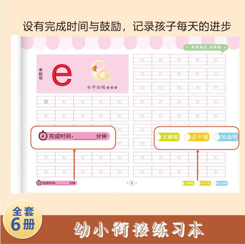 幼小衔接点阵控笔训练每日打卡数字汉字拼音描红幼儿园写字练习本