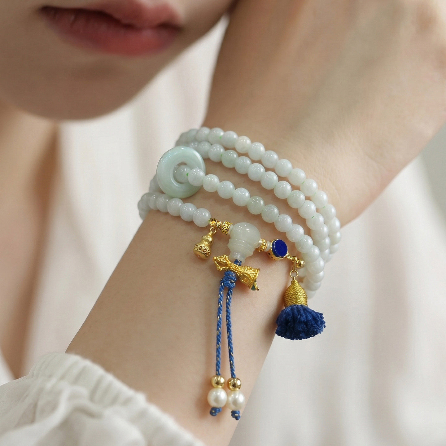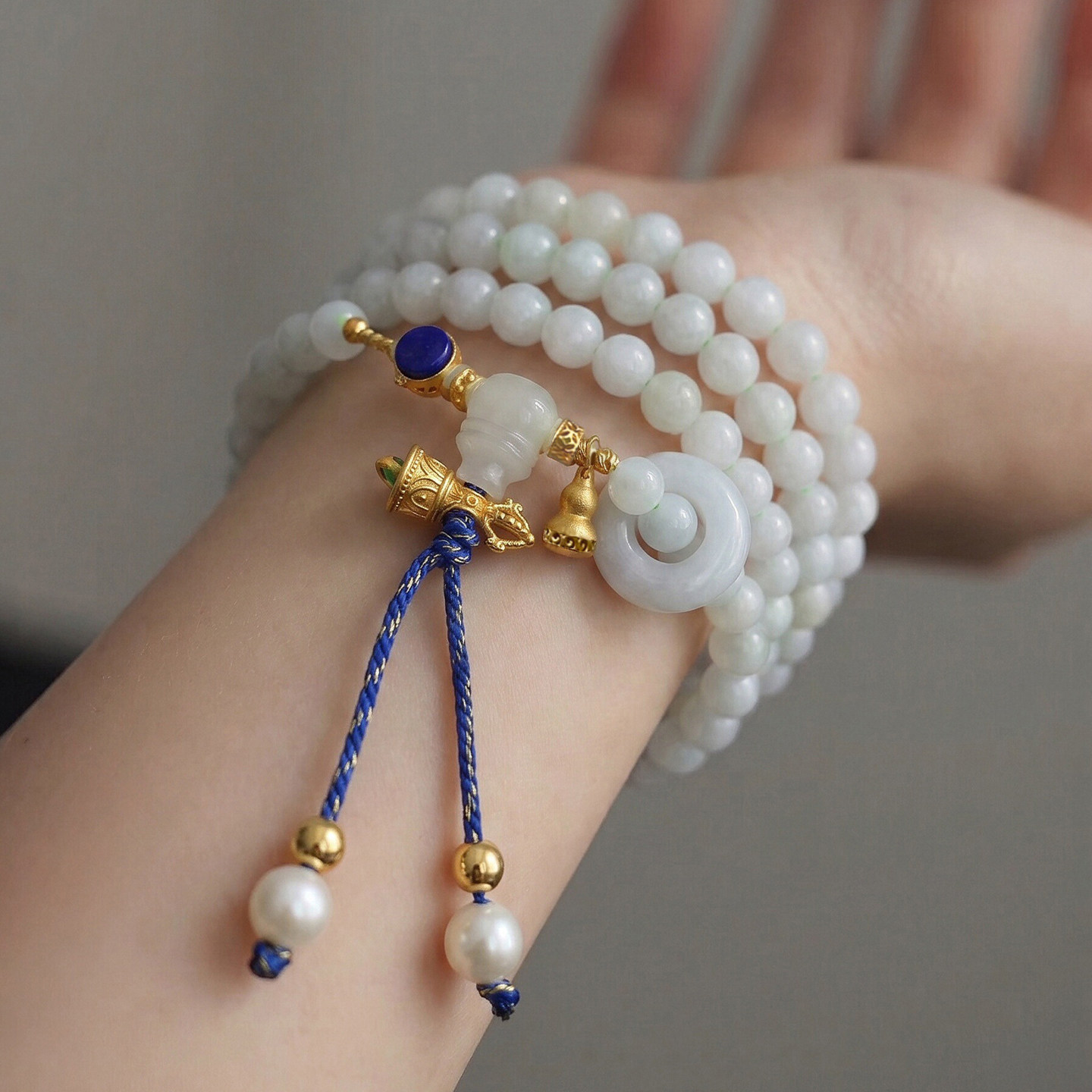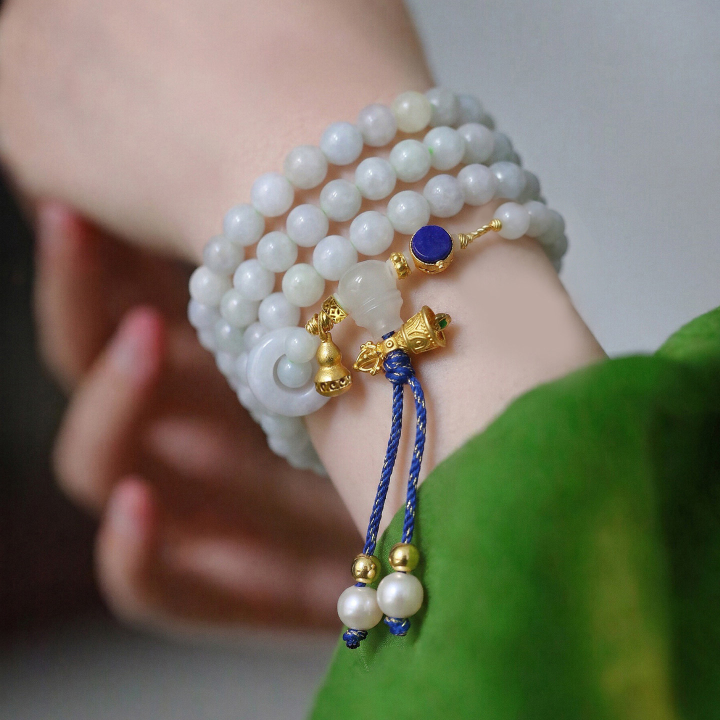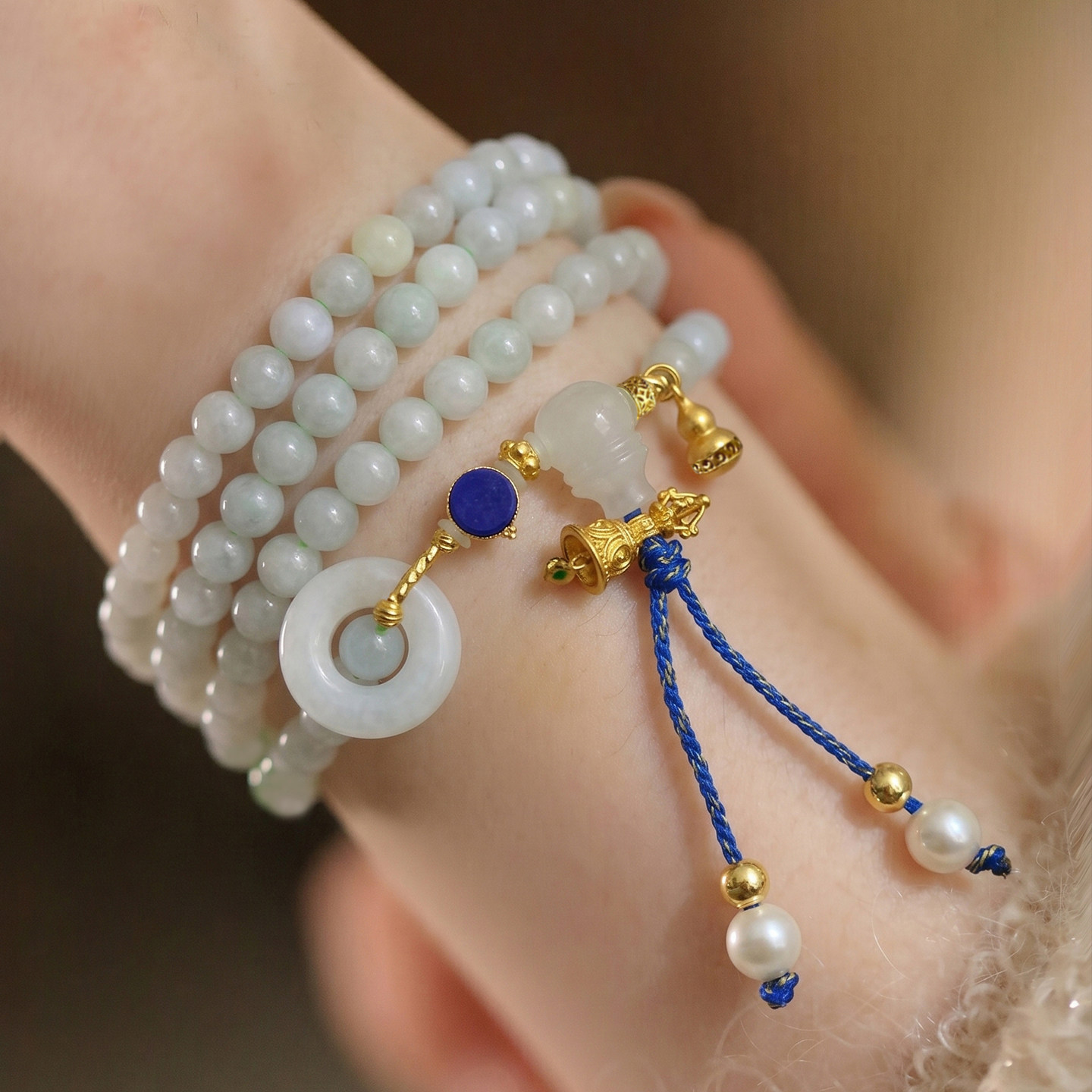 珍氏珠宝天然淡水珍珠手链女款 正圆新中式翡翠白玉设计多圈手饰