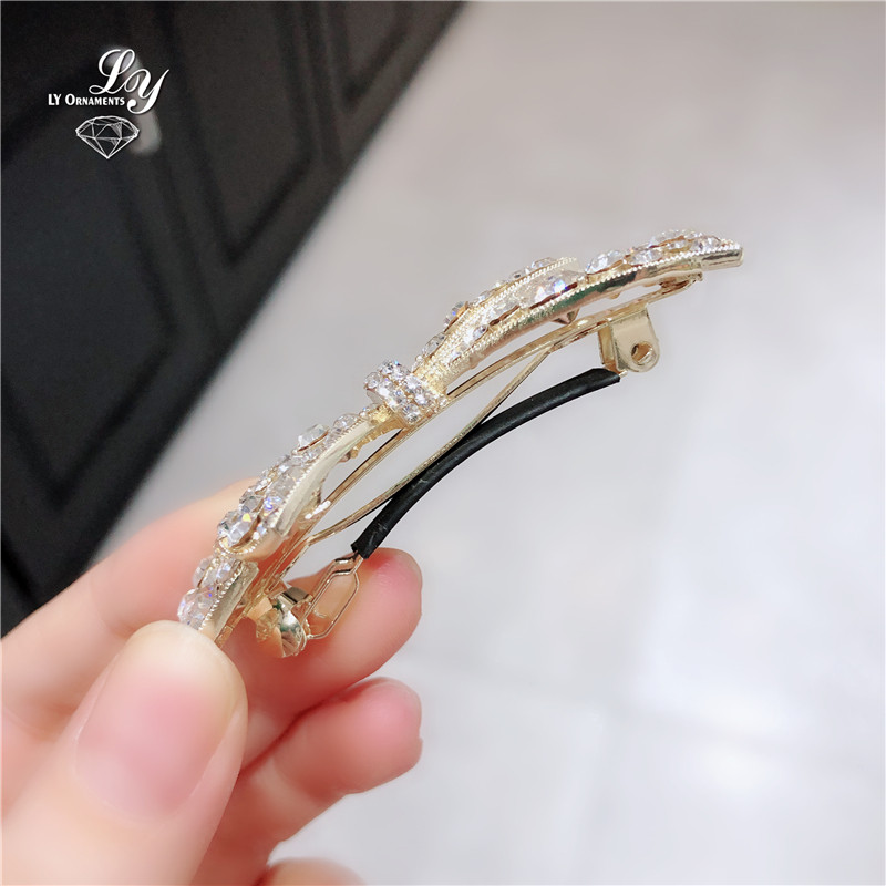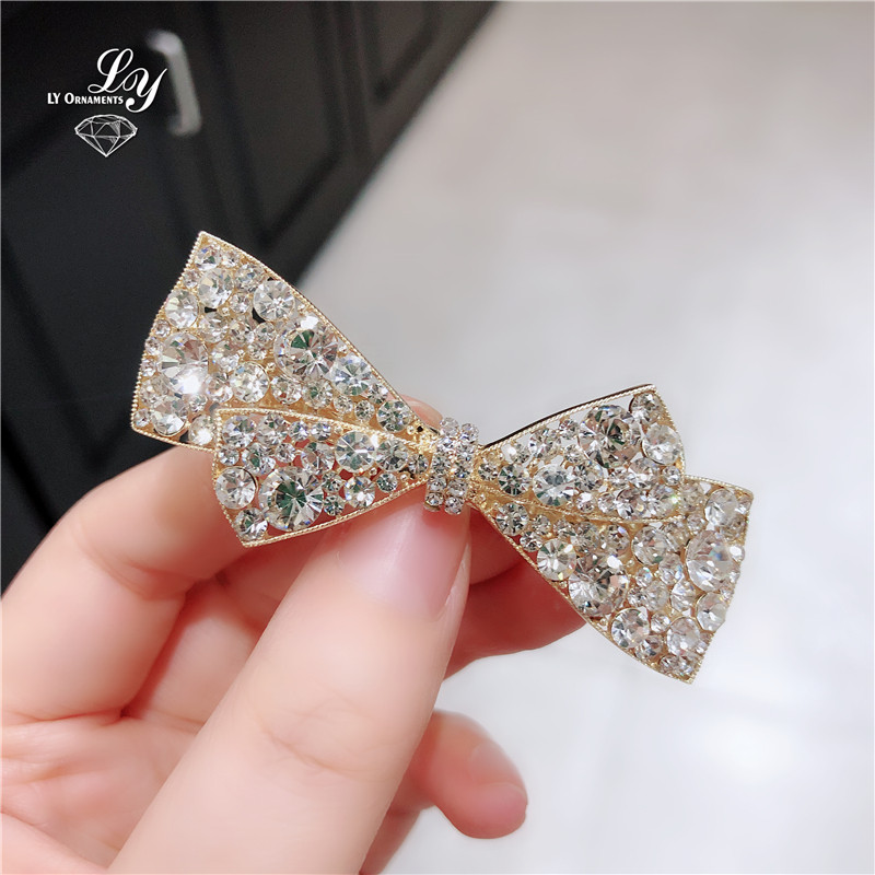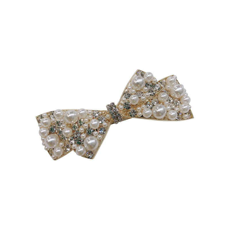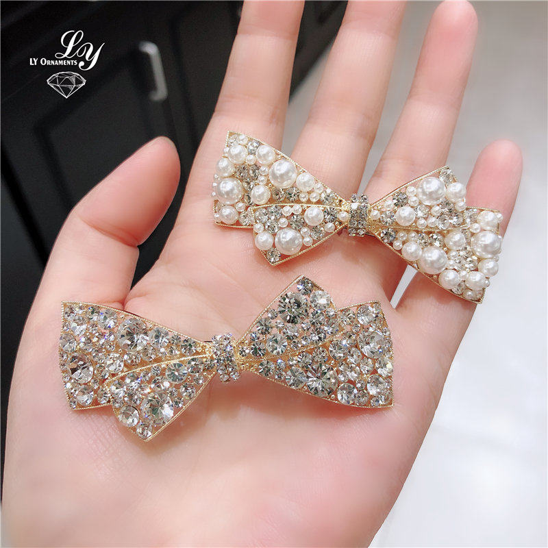 韩国蝴蝶结头饰半扎发夹子后脑勺顶夹气质珍珠发卡水钻边夹网红女