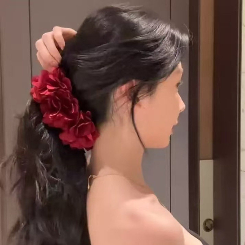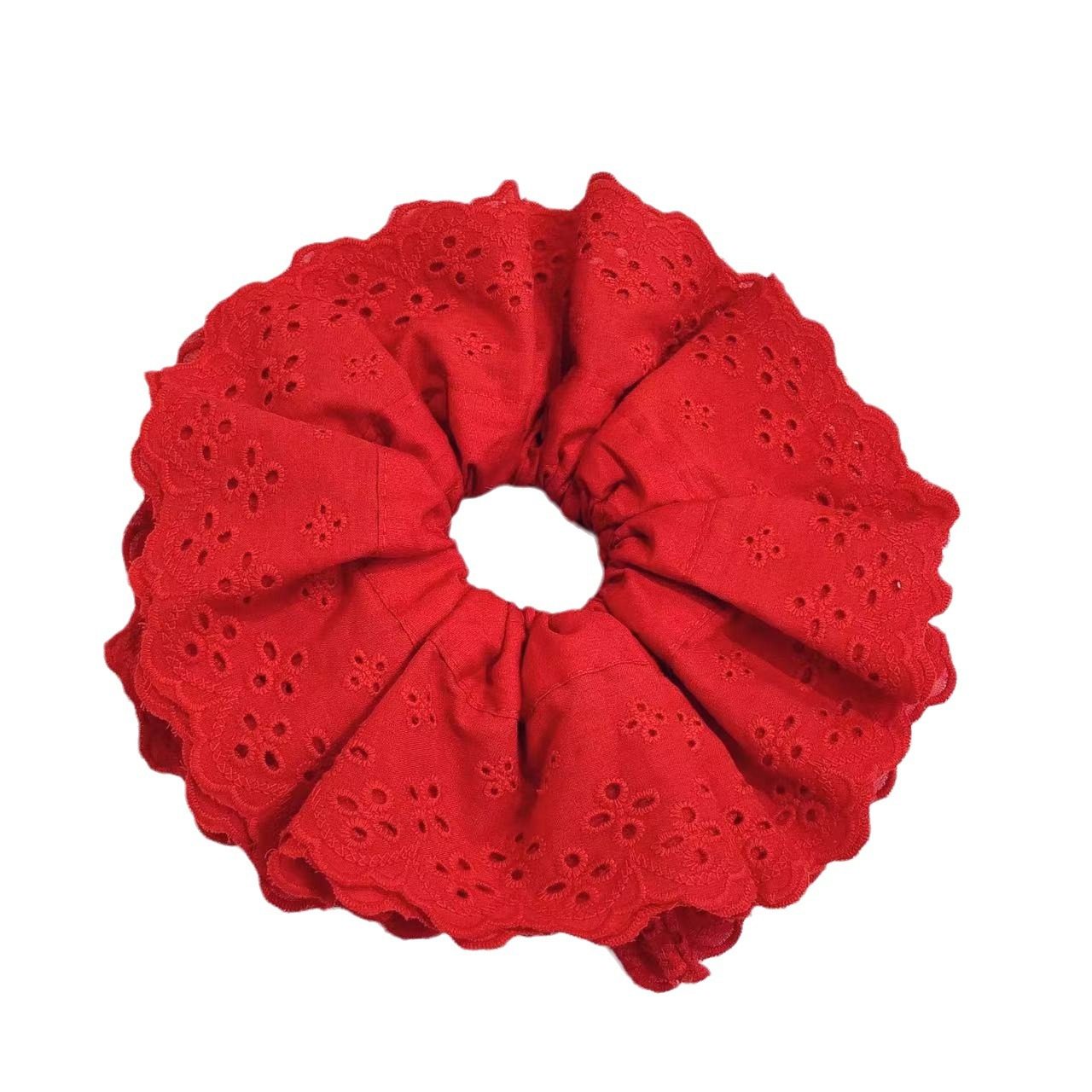 易梦玲同款大红色重工大号四层蕾丝花边大肠发圈复古法式镂空头花