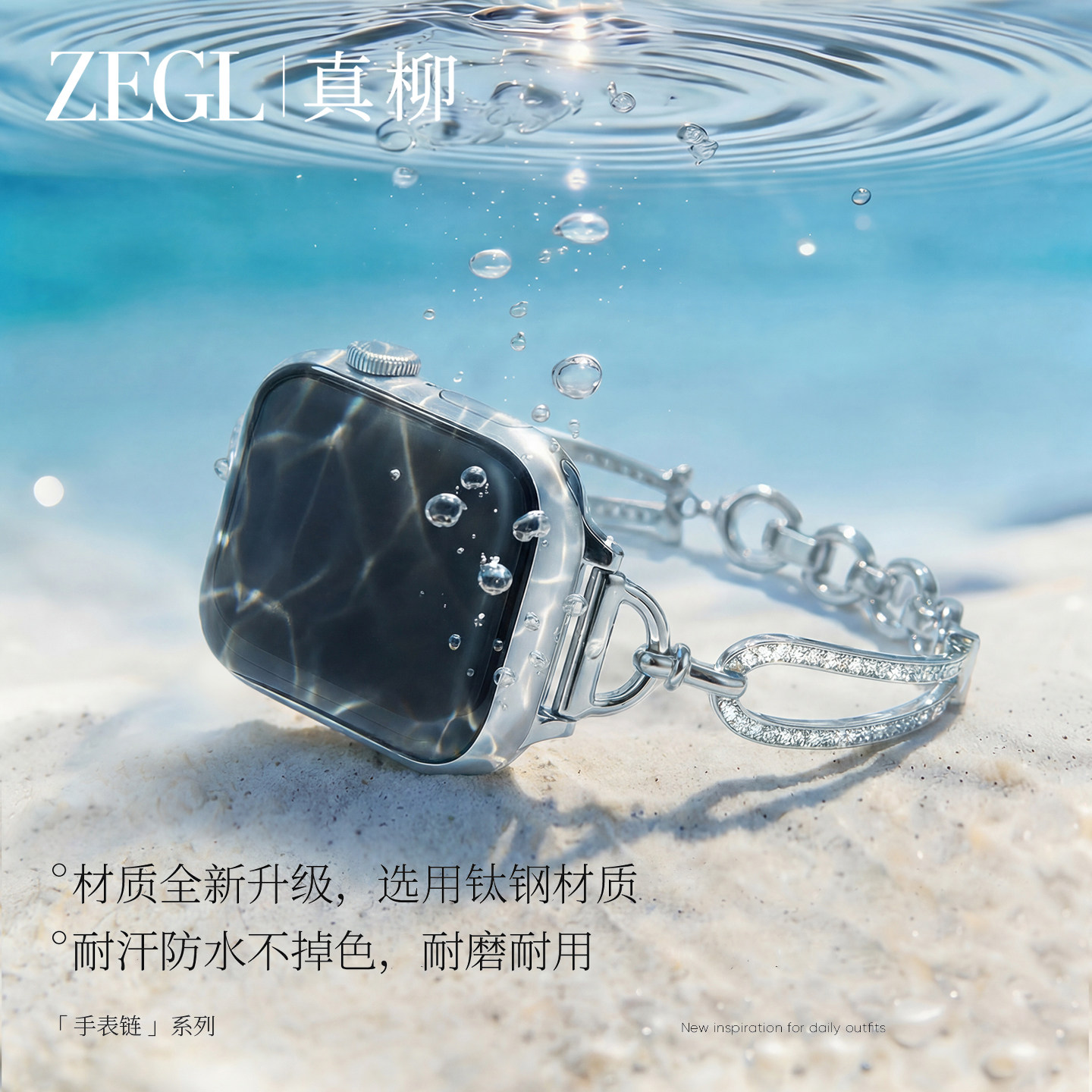 ZEGL设计师适用苹果手表表带钛钢兼容AppleWatchS11手表带iwatchSE银色手表链春夏手链女轻奢小众精致腕带