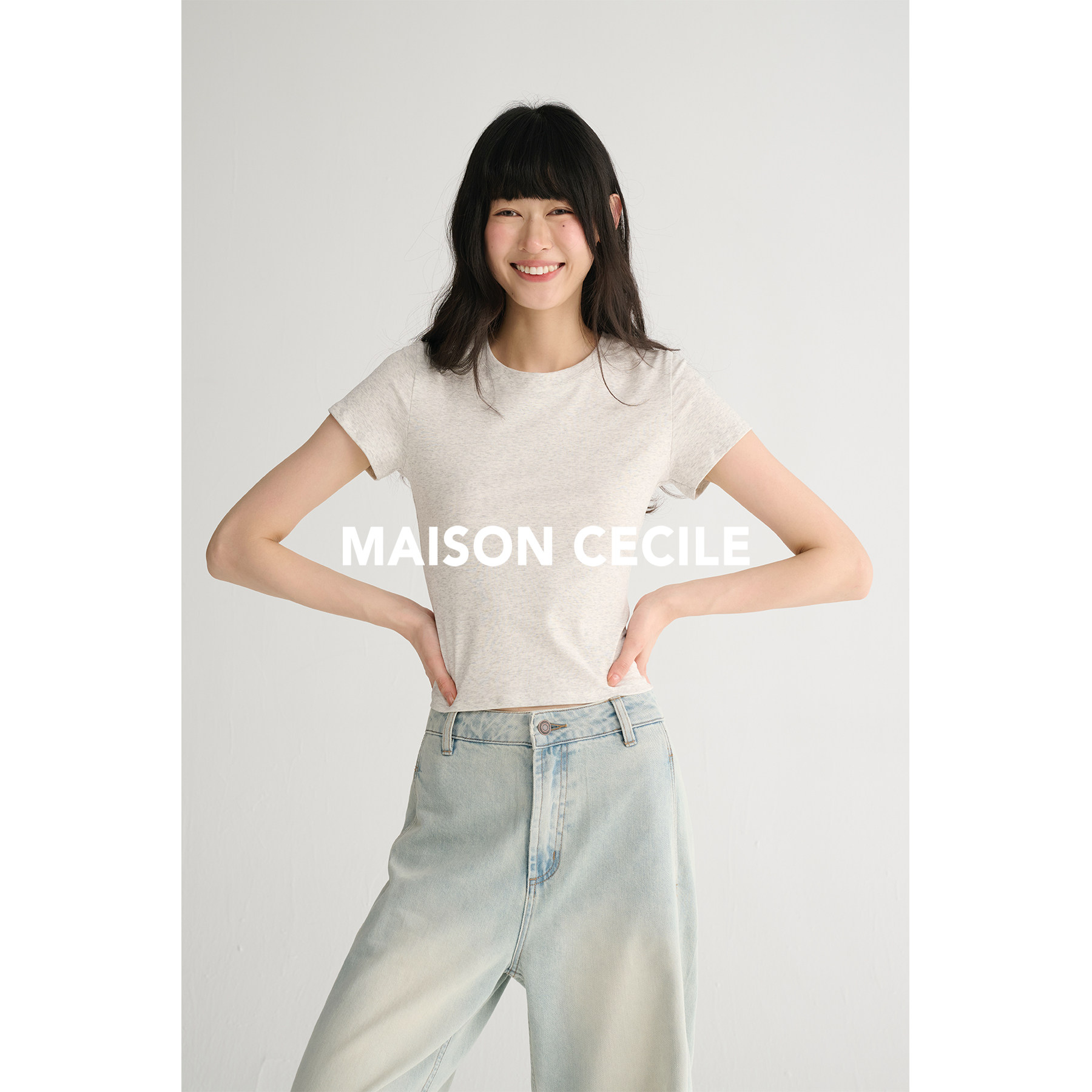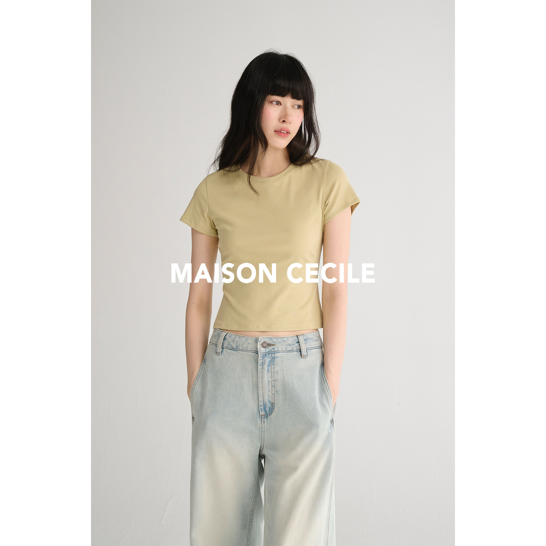 MAISON CECILE基础bi入/夏季修身短款百搭显瘦显比例圆领T恤上衣
